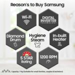 Samsung 7 kg, 5 Star, AI Control, Wi-Fi, Digital Inverter, Motor, Fully-Automatic Front Load Washing Machine (WW70T502NAN1TL, Hygiene Steam, Inox)
