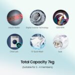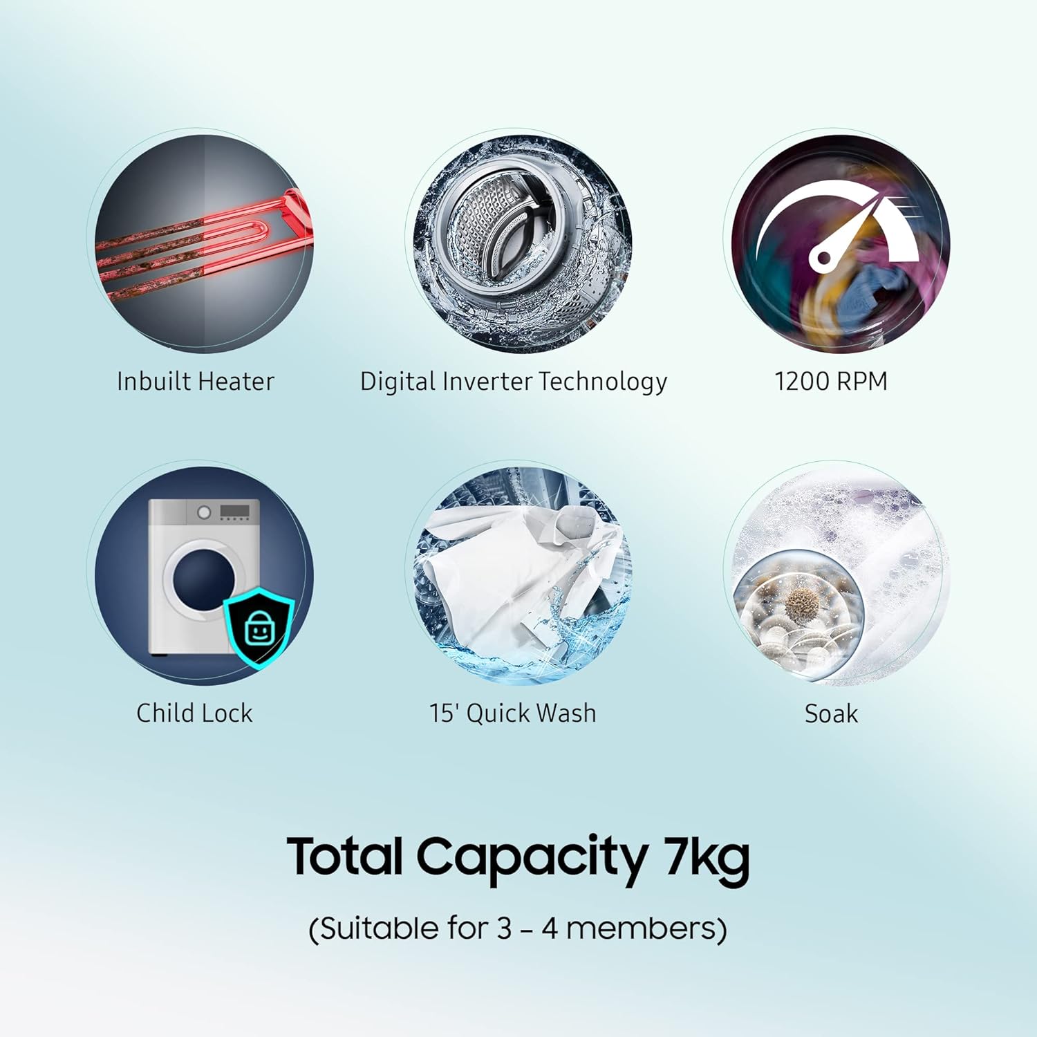 Samsung 7 Kg 5 Star Inverter Fully Automatic Front Load Washing Machine Appliance (WW70T4020CX1TL Inox, In-Built Heater)