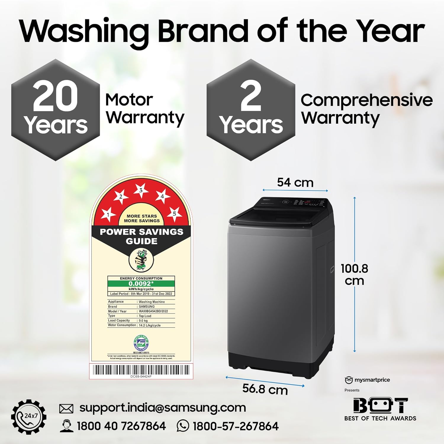 Energy Star rating : 5 Star- Best in class efficiency |Powered by Digital Inverter Technology for energy savings | Energy Consumption : Refer to BEE label