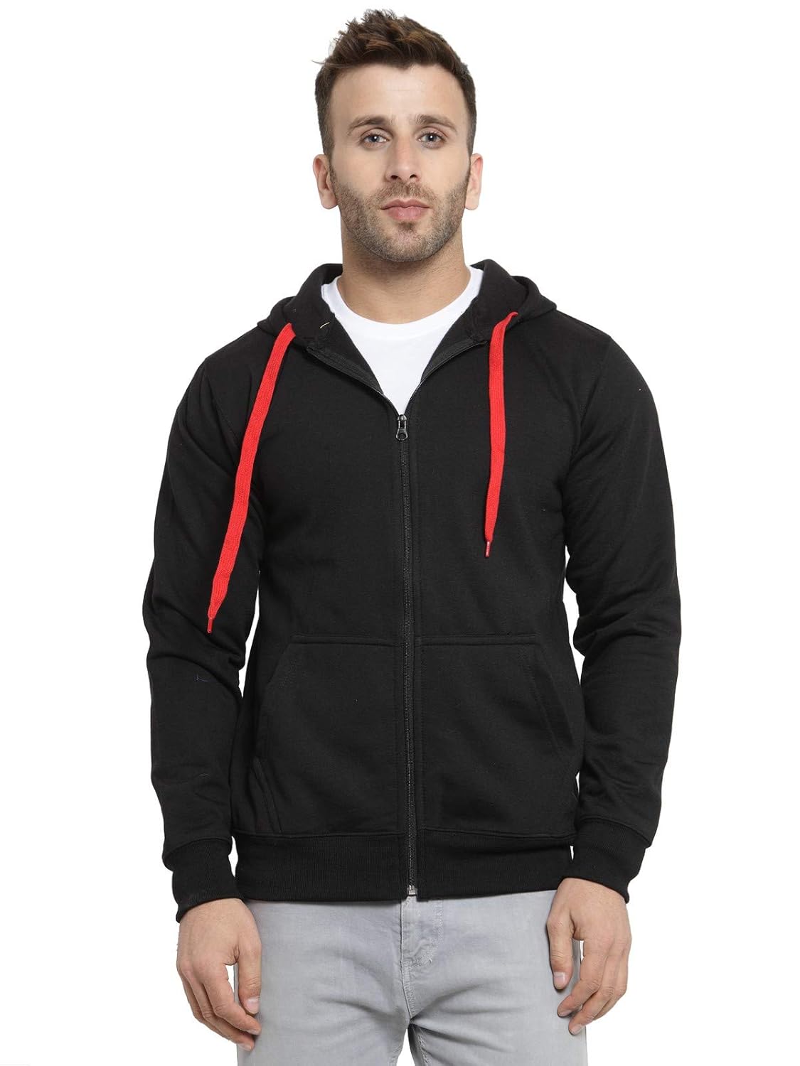 Scott International Men’s Solid Cotton Hoodies for Men Sweatshirt for Men Gym Warm Travel Hoodies for Men Pullover Hoodies for Boys Stylish Winter Wear with Hood and Pockets Zipper Hoodie Black