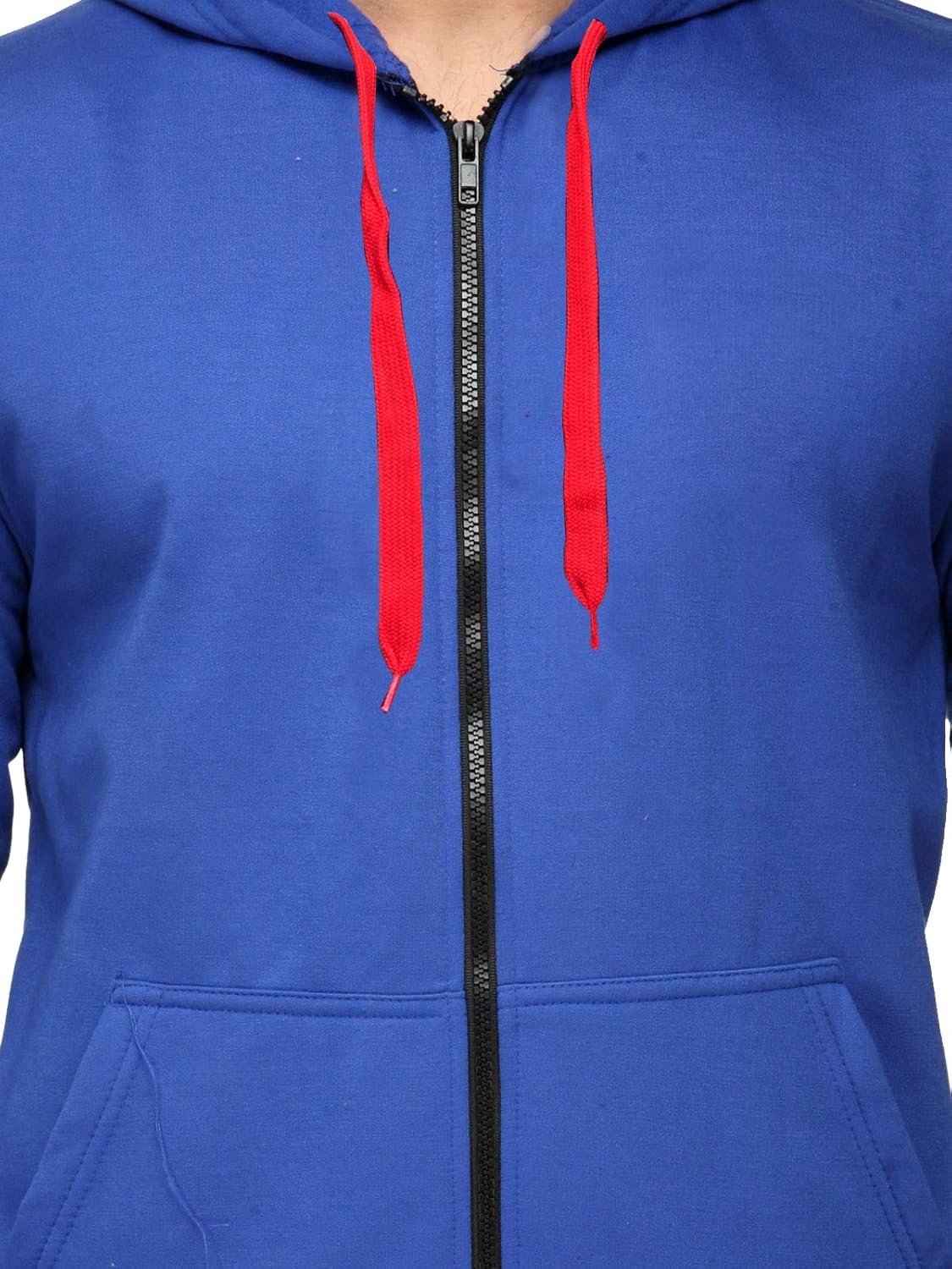 Scott International Men’s Solid Cotton Hoodies for Men Sweatshirts for Men Sweatshirt for Men with Zipper Stylish Winter Wear with Hood and Pockets Royal Blue