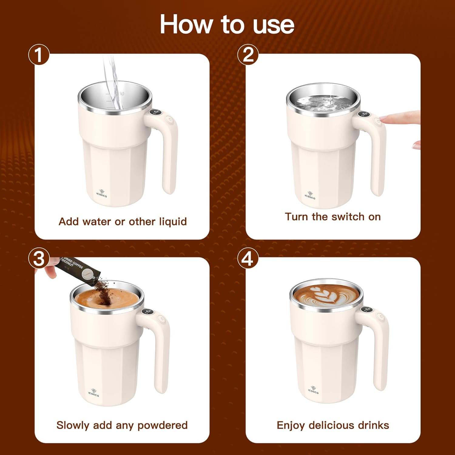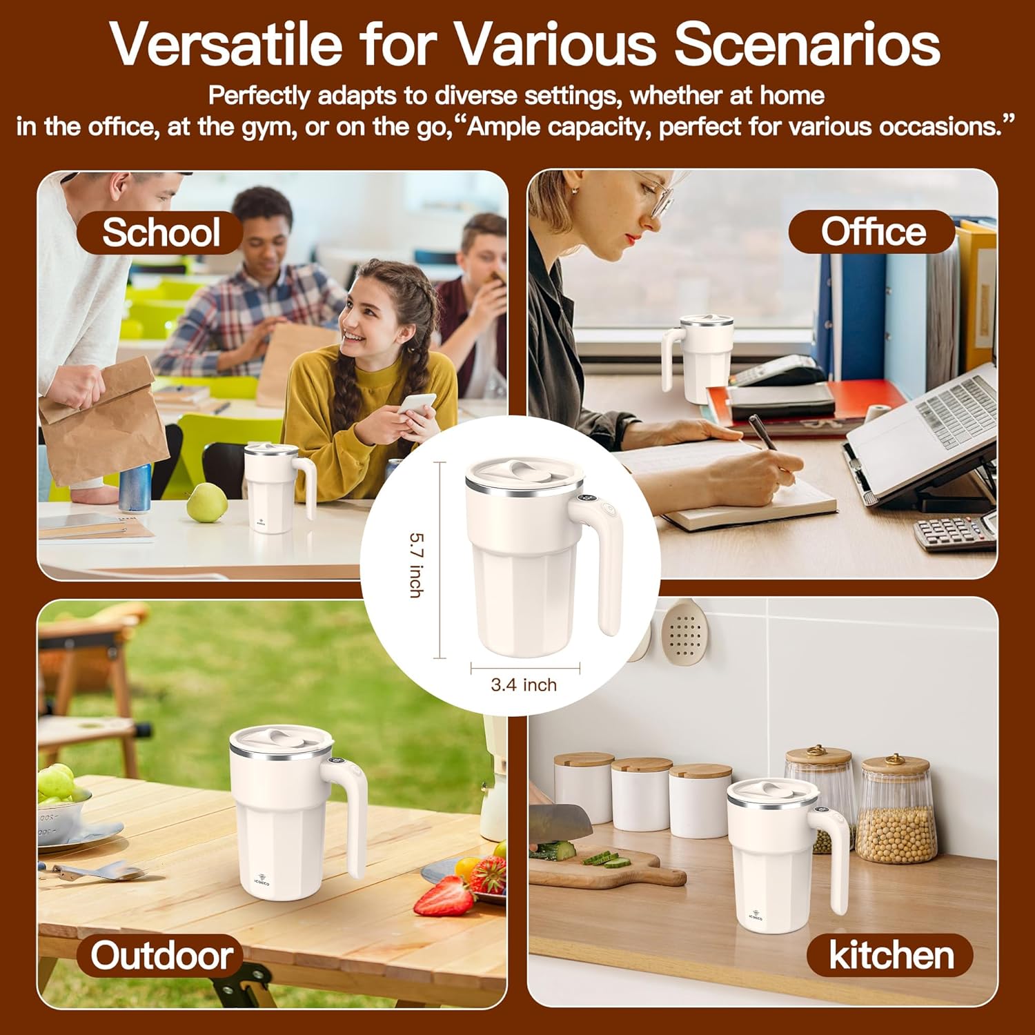 【Leak-Proof and Portable Design】: The coffee cup that stirs itself features a spill-resistant lid and an ergonomic design, making it ideal for home, office, or travel use. Enjoy your favorite beverages without worrying about spills