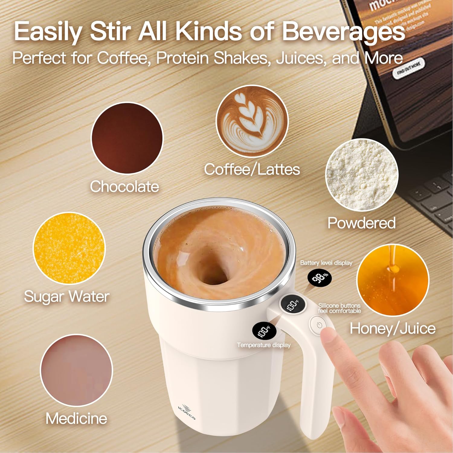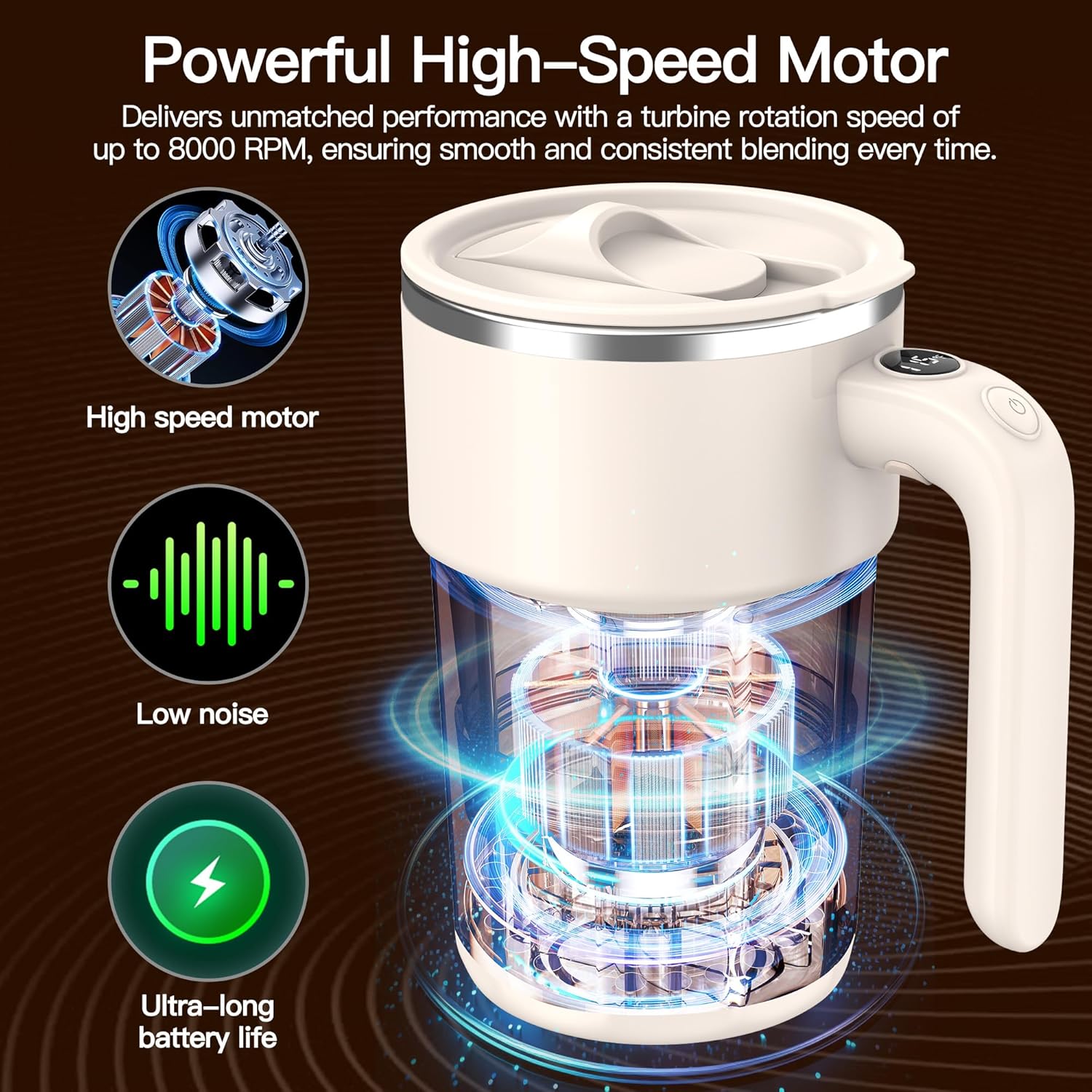 【Made from High-Quality PP and ABS Materials】: This stirring coffee mug combines safety and quiet operation effortlessly. Made with food-grade PP material, it’s lightweight, non-toxic, and corrosion-resistant for safe beverage contact. ABS material adds durability and impact resistance, ensuring stable high-speed stirring. Together, they deliver smooth, efficient mixing with minimal noise for a better experience