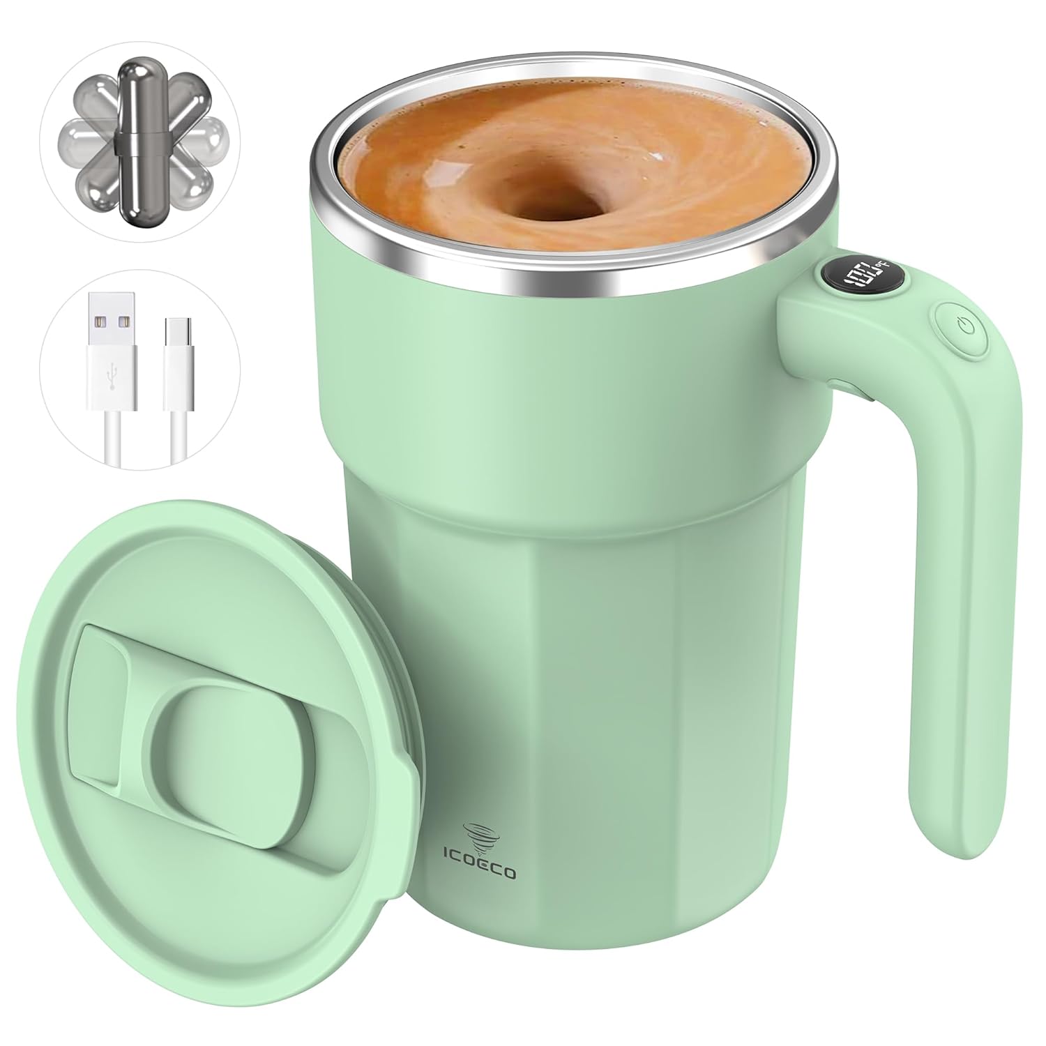 Self Stirring Coffee Mug 14oz, Rechargeable Self Stirring Mug, Magnetic Self Stirring Cup for Coffee, Milk, and Hot Drinks, Automatic Mixing and Easy to Clean(Matcha Green)