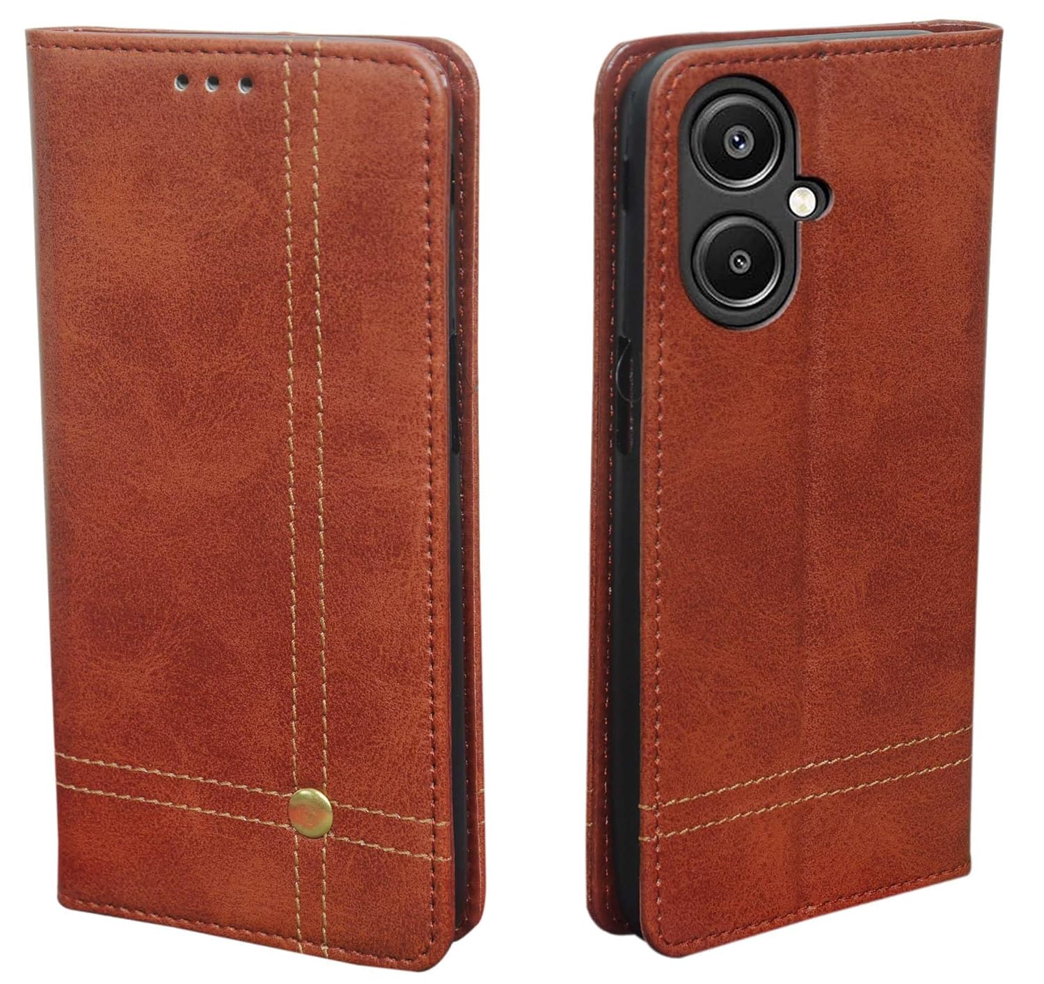 SESS XUSIVE Leather Flip Cover for Samsung Galaxy M05 / A05 / F05 Wallet Slim Book Cover with Card Slots Magnetic Flip Cover for Samsung M05 / A05 / F05 – Magnetic Brown