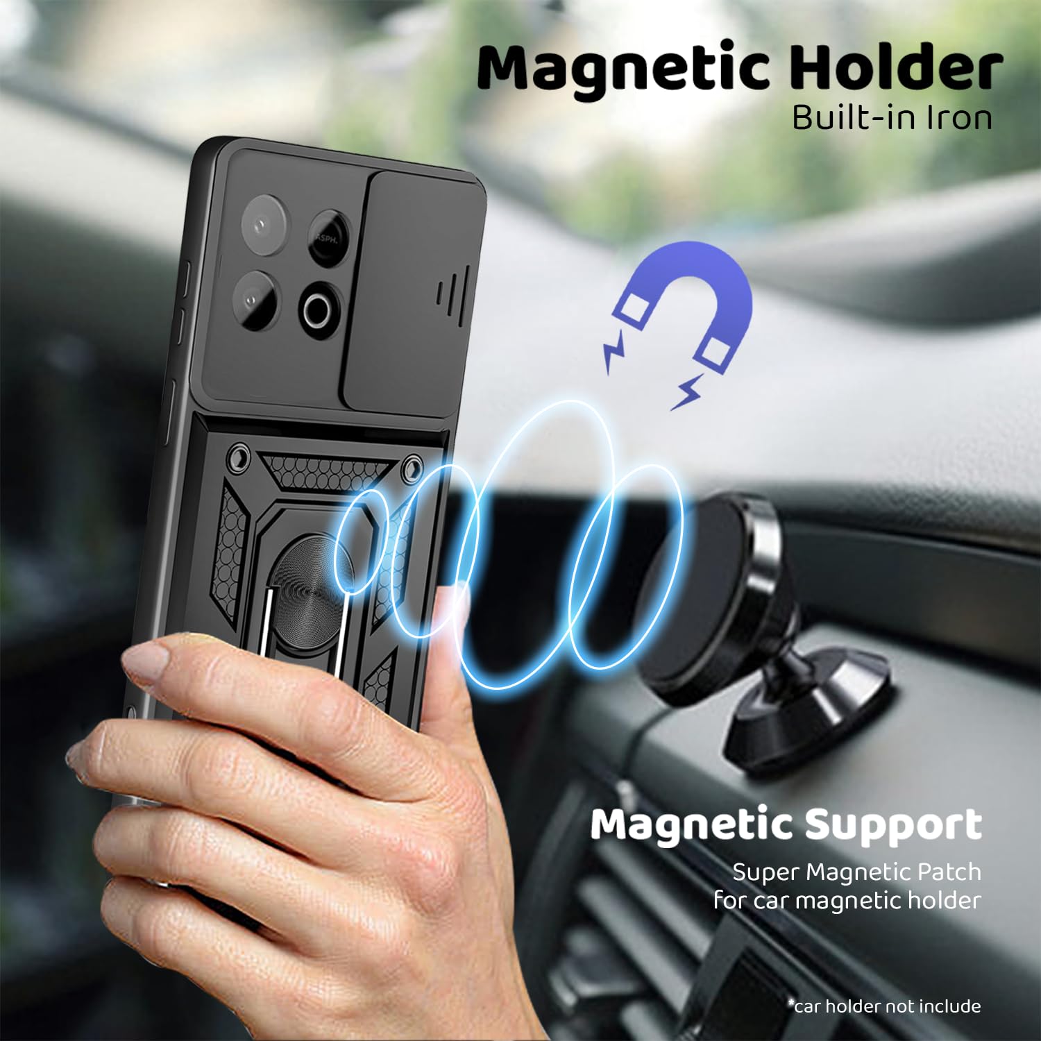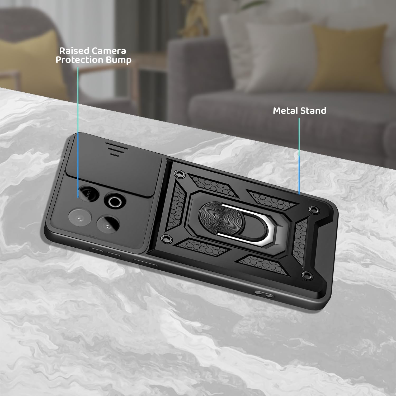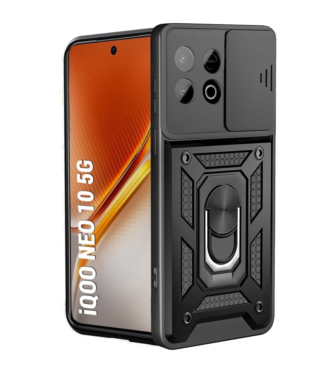 SESS XUSIVE TPU+PC Tough Armor Bumper Back Cover Case For Iqoo Neo 10 5G | Sliding Camera Cover, Kickstand & Ring Holder 360 Degree Protection Back Cover Case For Iqoo Neo 10 5G – Black