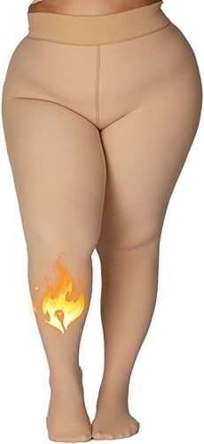 SHAPERX® Women’s Winter Thermal Tights Large Sizes Thermal Plush Stockings Pantyhose Fleece Lined Leggings Warm Thick Tights Pack of 1 (XL, Skin)