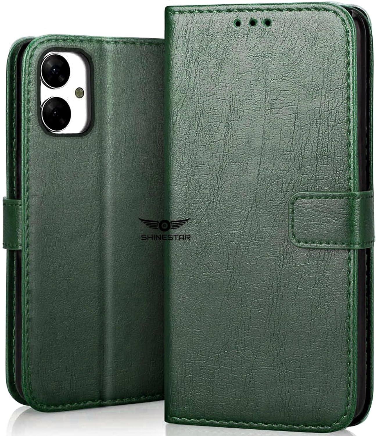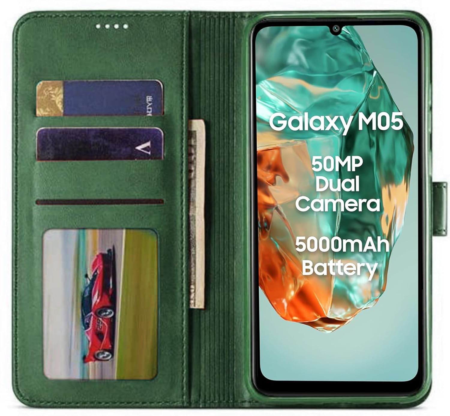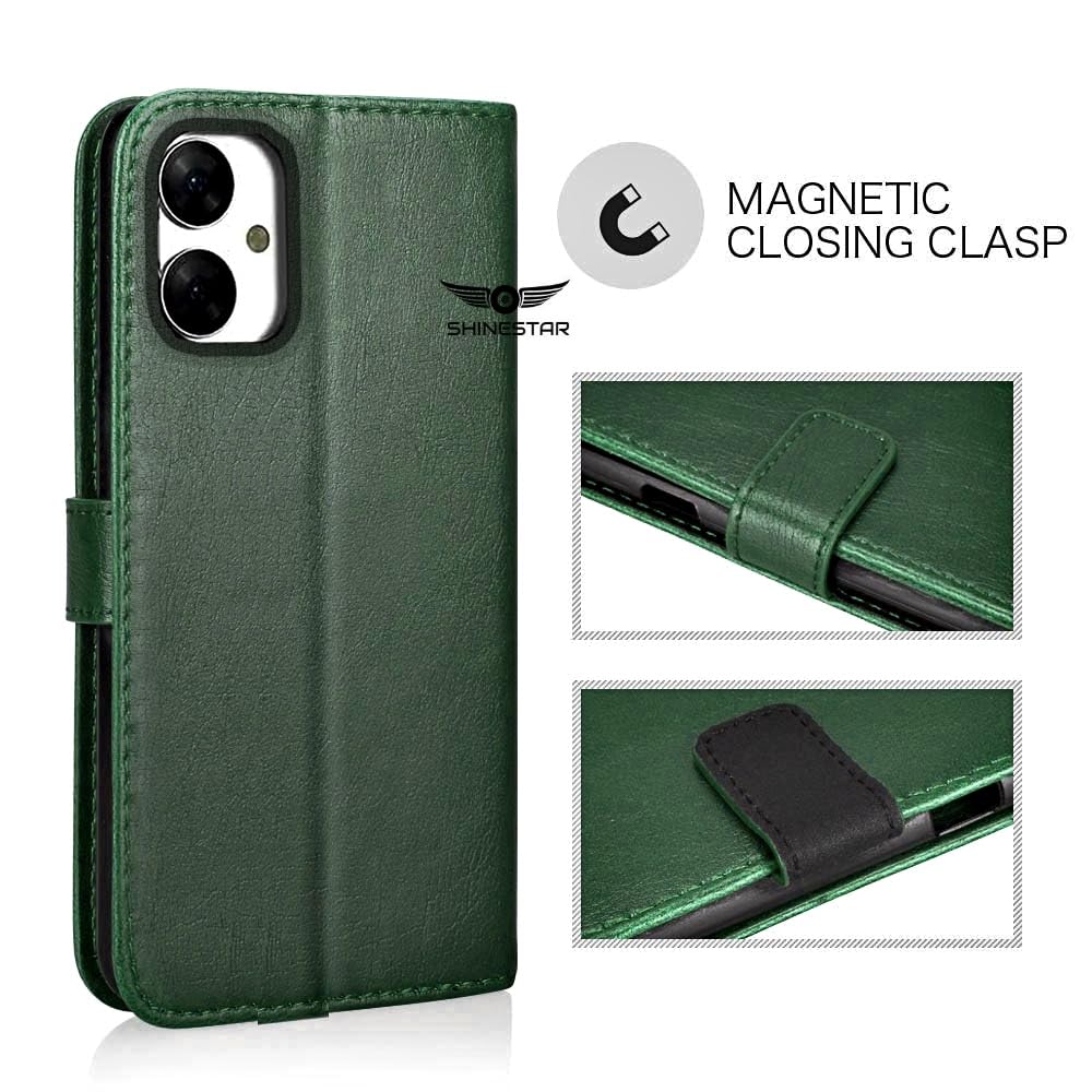 SHINESTAR Flip Cover for Samsung Galaxy M05 / A05 / F05 | PU Leather Wallet Case with Card Slot, Kickstand, Magnetic Closure & Shockproof TPU Shell – Unique Green
