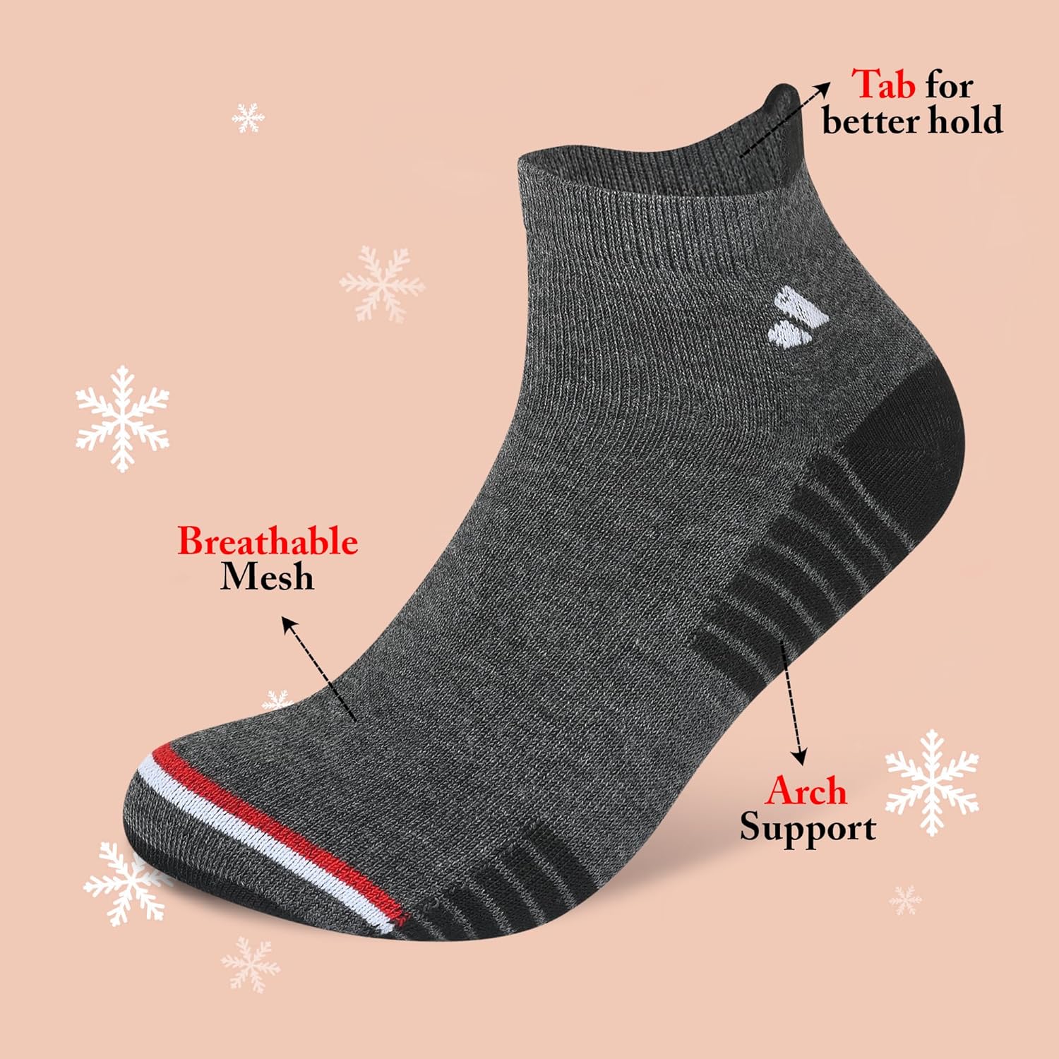 Cotton loops across the fabric of the socks offer cushioning and absorb sweat keep your feet fresh & comfortable all day long.