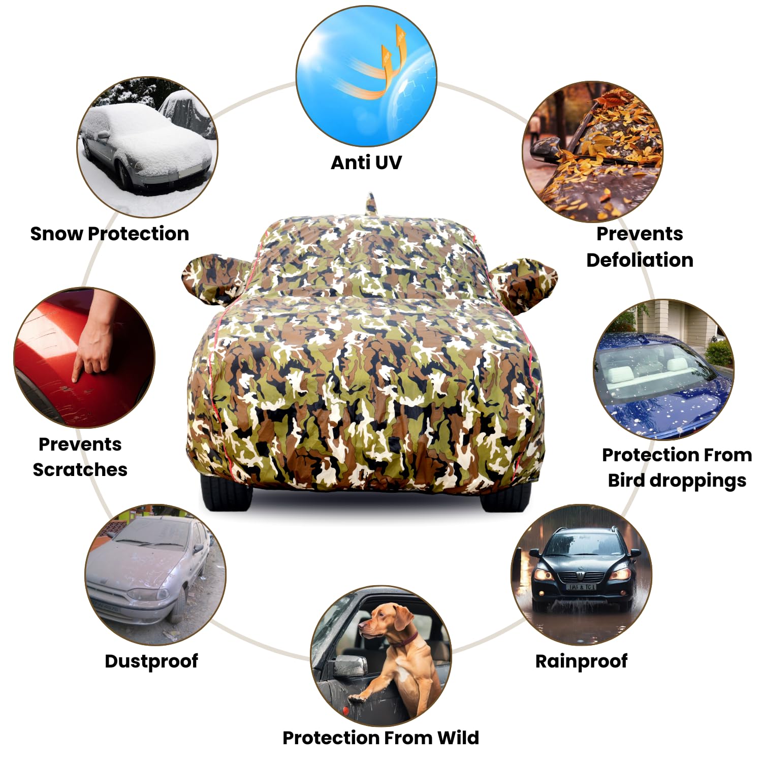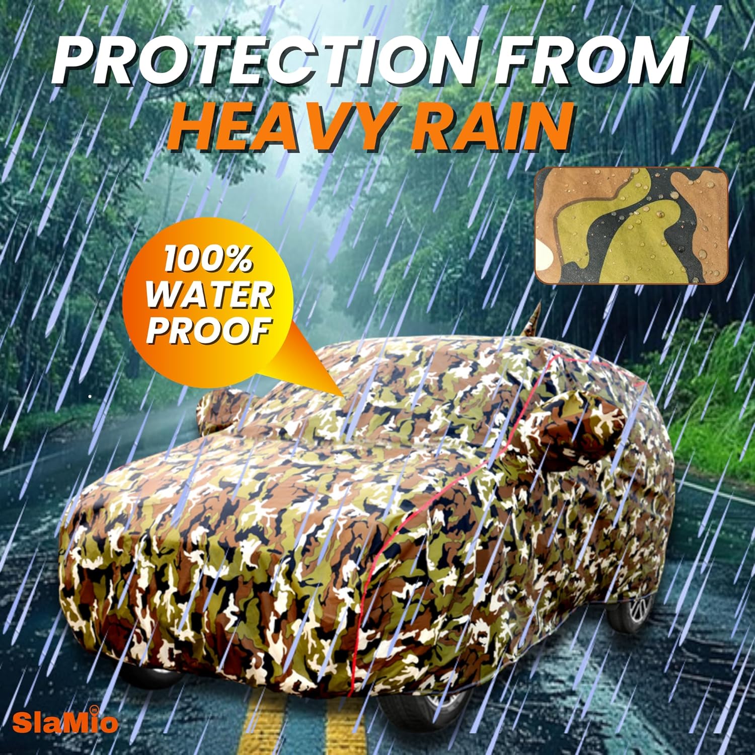 Slamio Waterproof Car Body Cover for Maruti Swift 2024 2025 Models, with Mirror & Antenna Pocket, All Weather Protection, Uv Resistant & Dust Proof, Triple Stitch, Custom Fit 1Unit (Jungle Print)