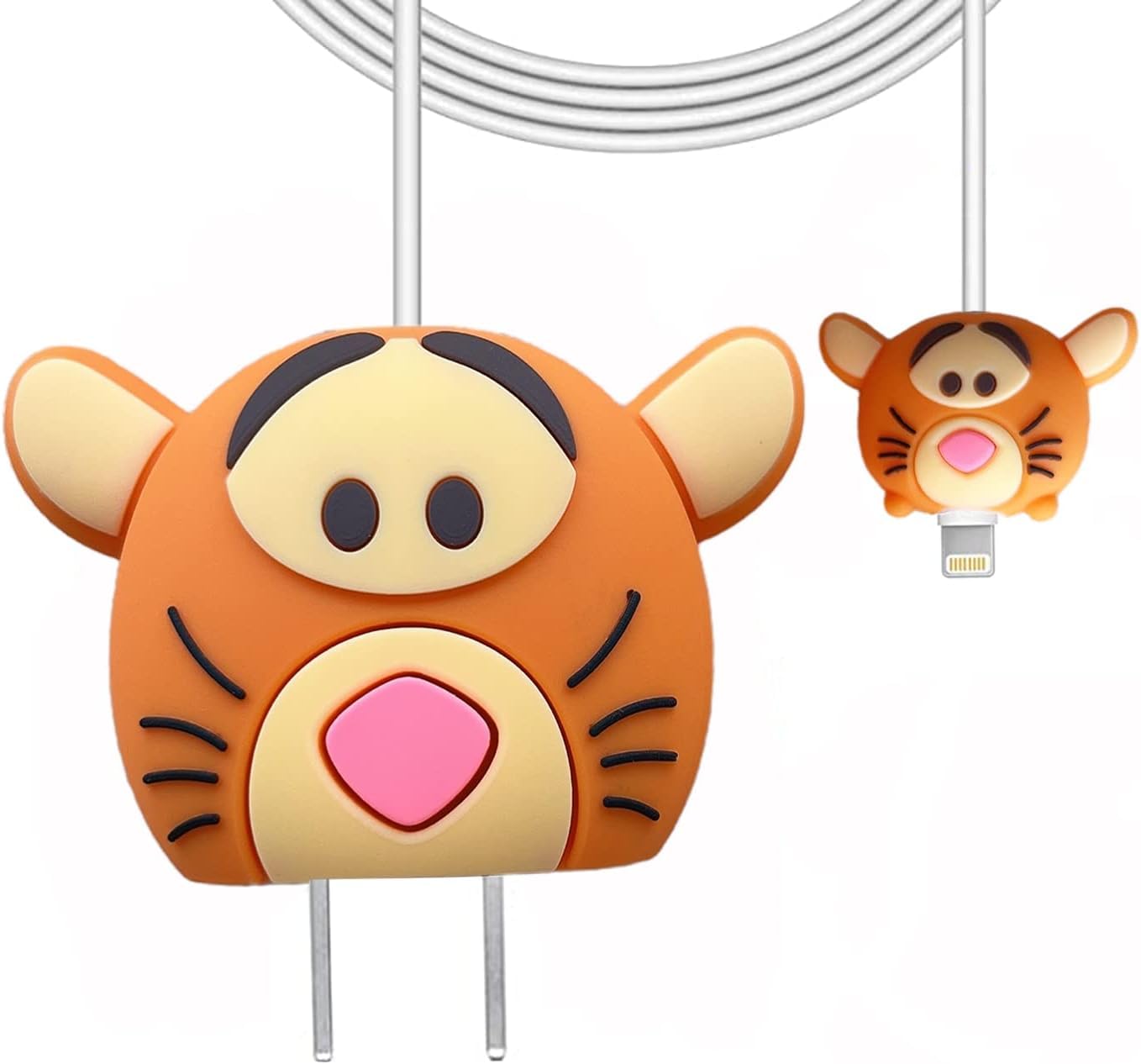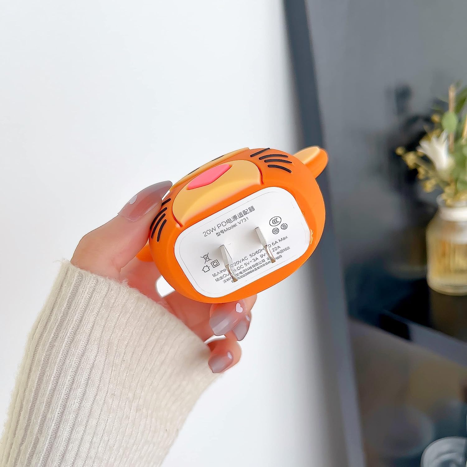 Soomio Protective Case Cover For Apple 20W 18W iPhone Usb-C Power Adapter Charger And Usb Lightning Cable, 3D Cartoon Character Case For iPhone Charger Full Protection Cover (Tiger), Multicolour