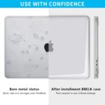 【Crystal Clear Design】: The transparent, crystal-clear design allows the original color and design of your MacBook to shine through, providing a sleek and elegant look. It’s an excellent choice for those who want to showcase their device while keeping it protected.