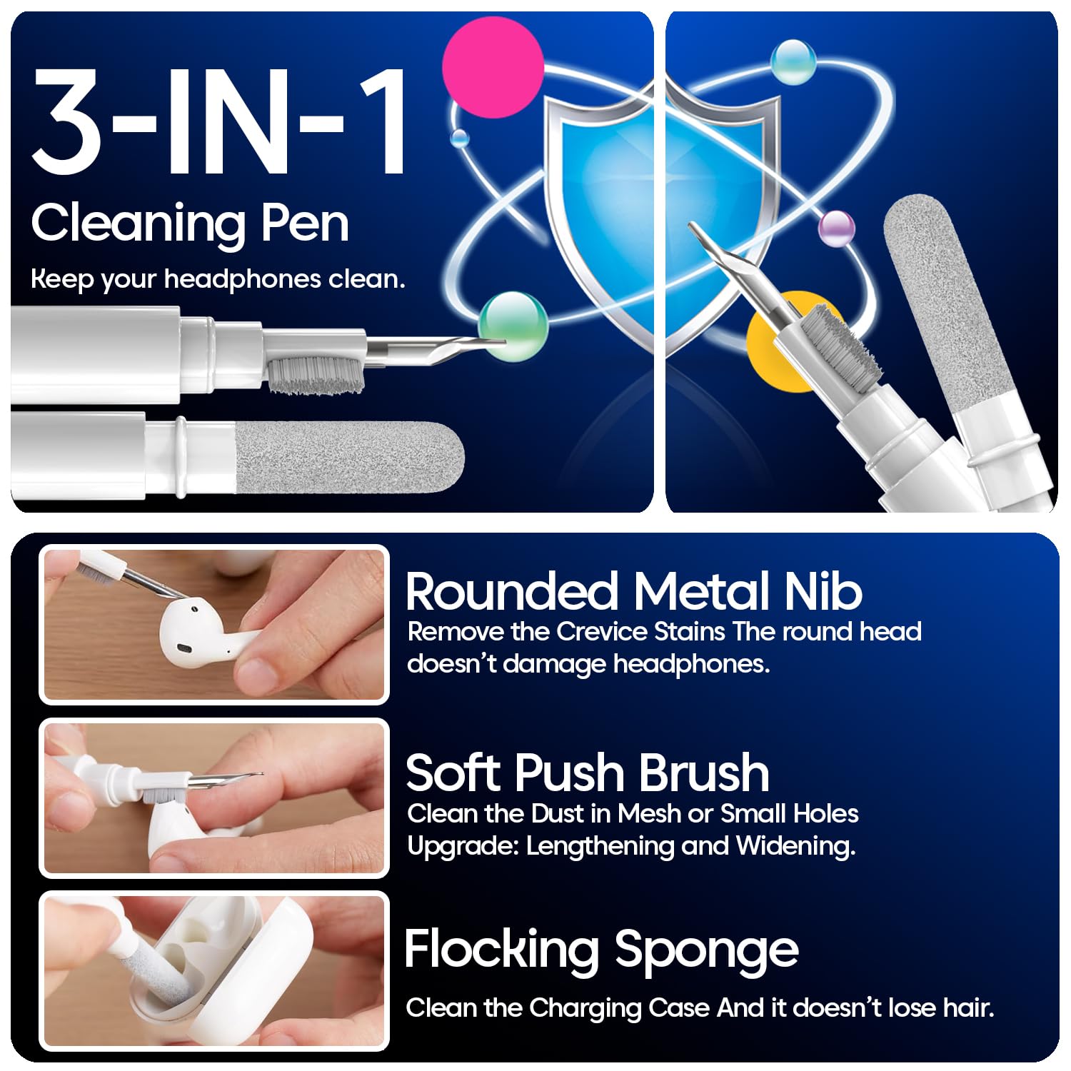 ✅ 【Includes 3-in-1 Cleaning Kit for Maximum Hygiene & Maintenance】 – This AirPod case set comes with a high-quality 3-in-1 cleaning pen featuring a flocking sponge, soft brush, and precision metal tip to remove dust, dirt, and stubborn earwax buildup. Keep your AirPods, case, and charging port clean and well-maintained for optimal audio performance. Whether you’re cleaning the speaker mesh or removing grime from the case, this cleaning tool ensures your AirPods stay fresh and functional.
