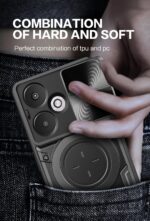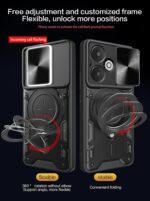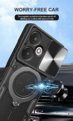 SPAZY CASE® Redmi 13C 5G Back Case | Heavy Duty Hybrid Case with 360 Degree Rotating Finger Ring Holder + Slider Shutter Camera Protection Cover for Redmi 13C 5G 5G – Black