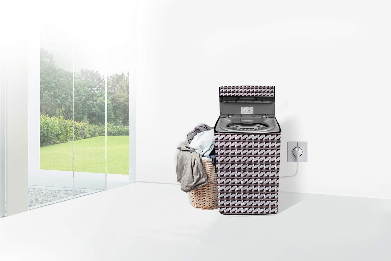 Stylista Washing Machine Cover Compatible for Whirlpool 6 Kg 5 Star Royal Fully-Automatic Top Loading Washing Machine WHITEMAGIC Royal Symmetric Pattern Grey