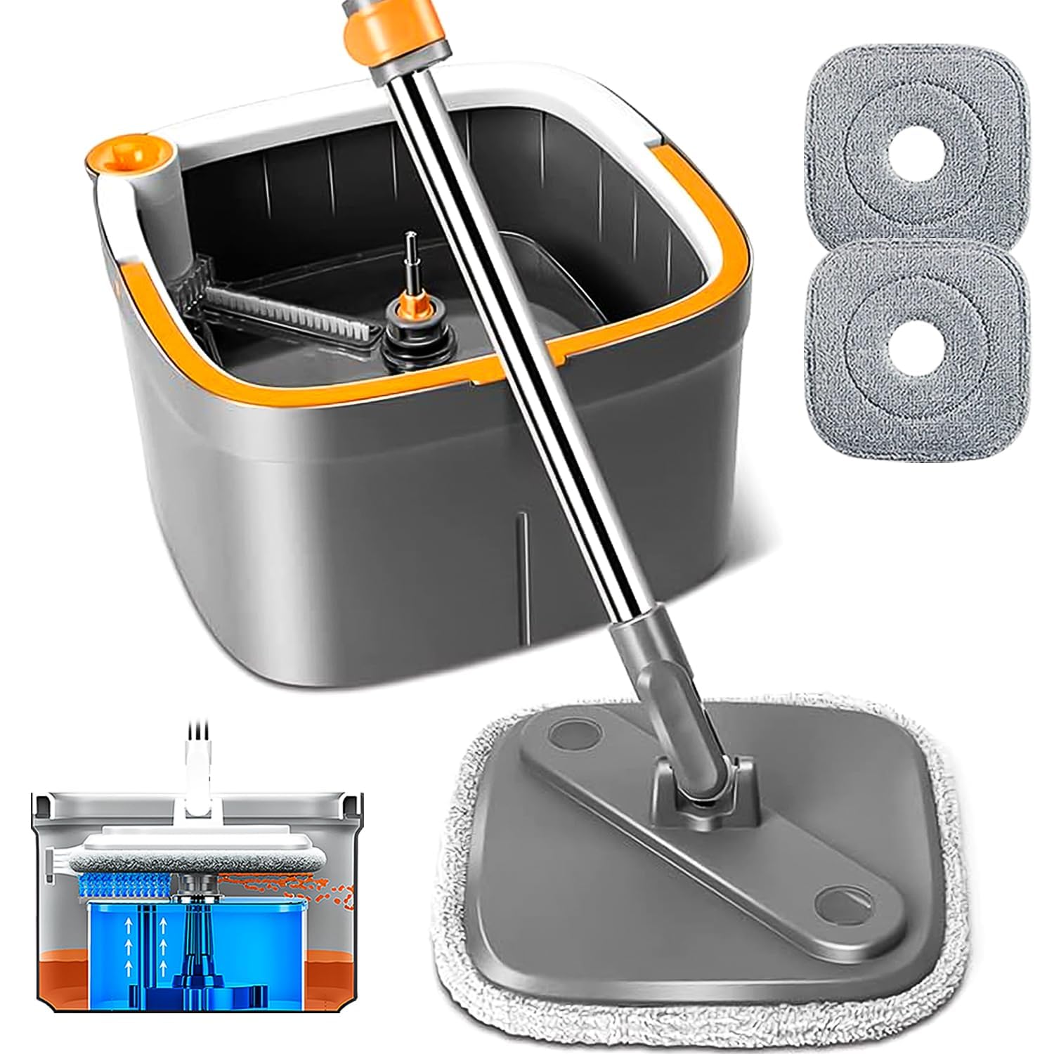 SUNBEET Spin Mop and Bucket Set with Self Separation Dirty and Clean Water System, Self Wringing 360° Rotating Square Mop-Head for Hardwood Tile Marble Floors