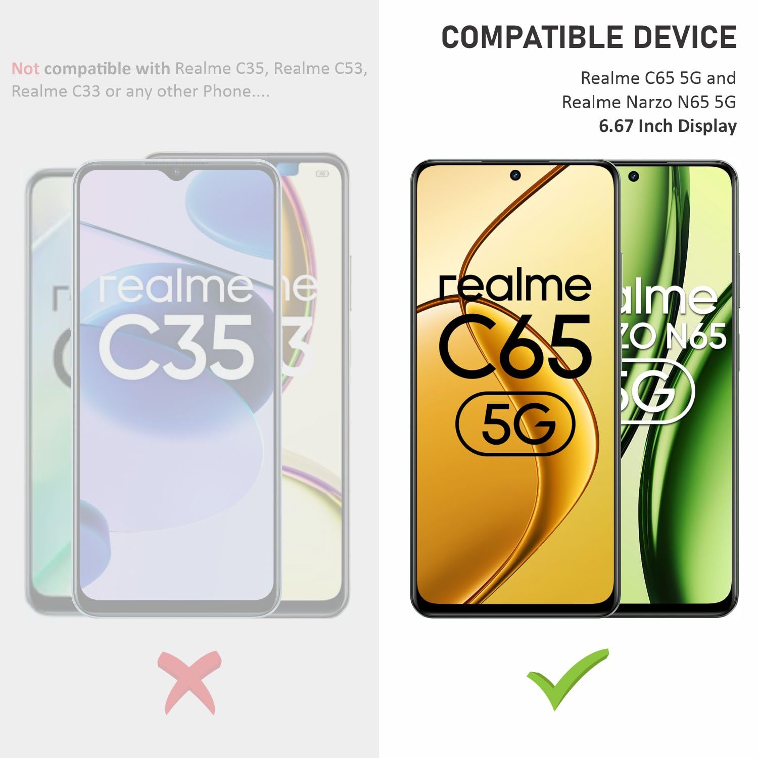 No, this is perfectly compatible with Realme C65 5G and Realme Narzo N65 5G Only.