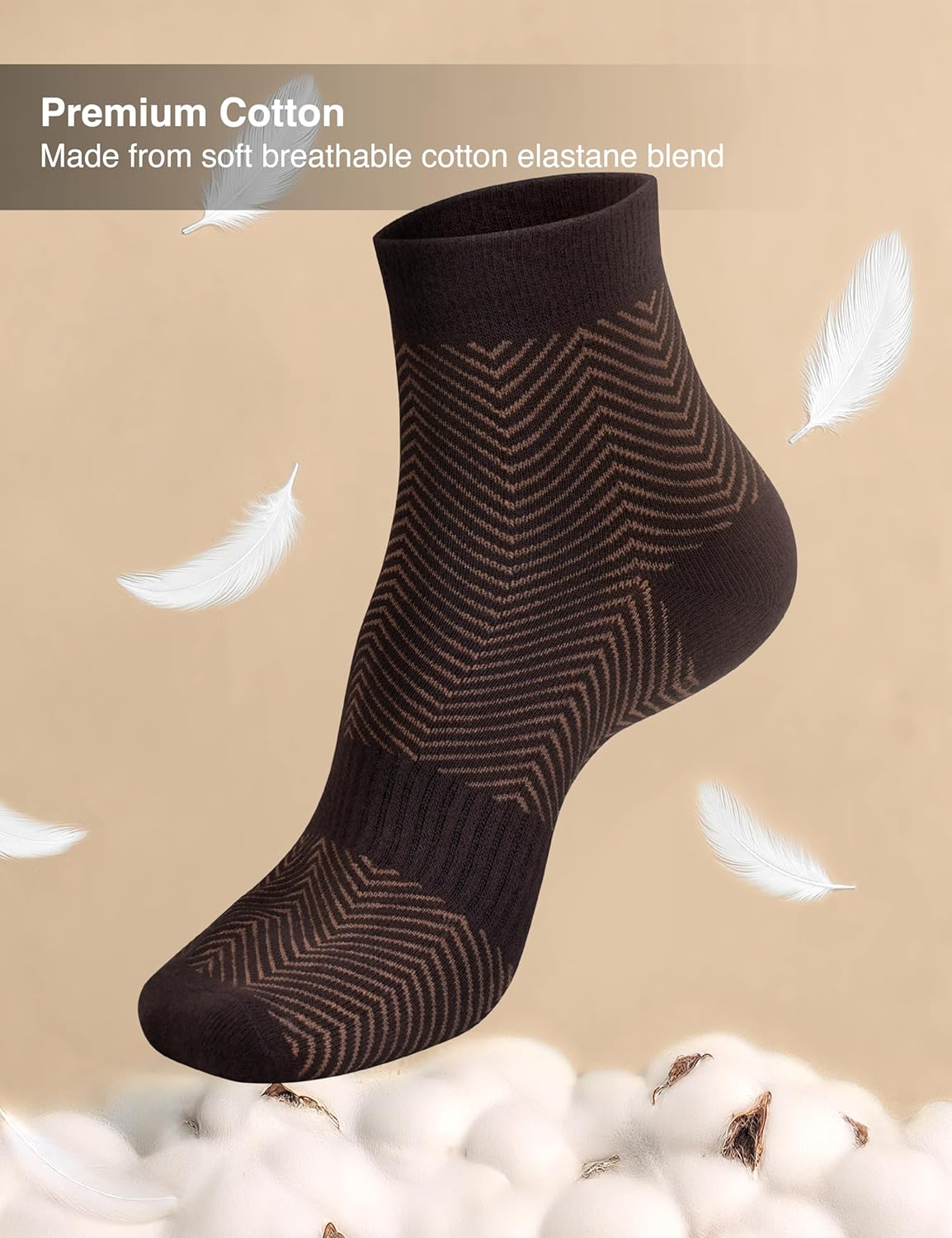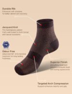 Discover exceptional comfort with Symbol Premium High Ankle Half-Terry Cushioned Socks, crafted from premium cotton with a mesh structure for superior breathability and ventilation. Advanced N9 anti-microbial and anti-pilling treatments ensure long-lasting freshness. The perfect high ankle design and smart-fit construction, combined with strategic mesh zones, provide lasting comfort throughout your day. These socks offer the ideal blend of sophistication and comfort to elevate your everyday style.