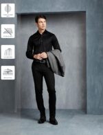 These formal shirts are made out of 100% double ply premium cotton material with liquid ammonia and moisture cure treatment that will resist wrinkles, add lustre and make the material breathable. The superlative craftsmanship with semi-cutaway collar, French placket, shanked and wrapped buttons, removable collar bones, and high quality interlinings would add on to the finesse of the garment. You may pair it up with a formal trouser and a blazer for a sharp formal look….. or roll up the sleeves and wear it with a chino .