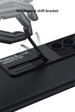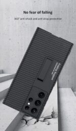 TechTrendz Carbonn Fiber Texture Leather Protective Case For Samsung Galaxy S24 Ultra With Built in Kickstand Slim Rear Camera Lens Protective Cover Compatible With S24 Ultra 5G 2024 (Black)