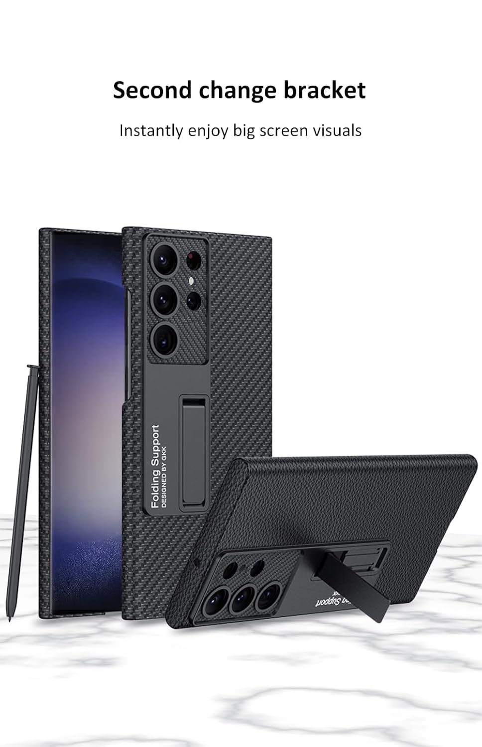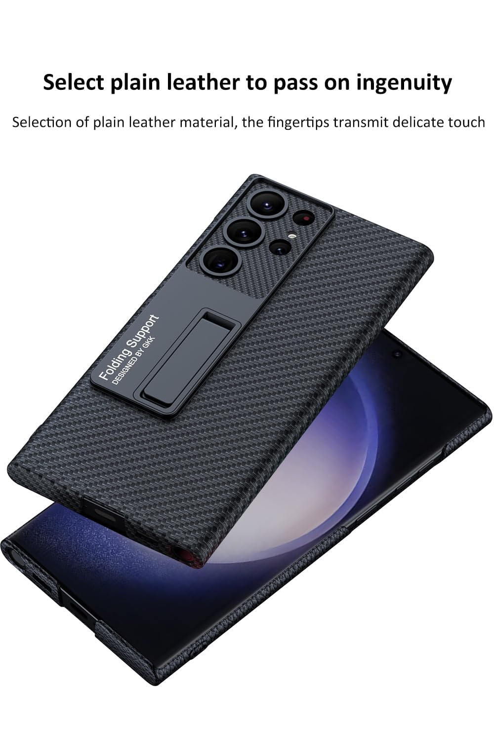 TechTrendz Carbonn Fiber Texture Leather Protective Case for Samsung Galaxy S24 Ultra with Built in Kickstand Slim Rear Camera Lens Protective Cover Compatible with S24 Ultra 5G 2024 (Black)