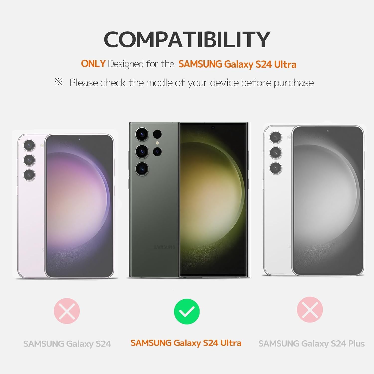 【Special Design】The leather case ONLY compatible with Samsung Galaxy S24 Ultra 5G 6.8 inch 2024(S24 Ultra ONLY!!!). Precise and smooth cutouts for buttons, camera and other ports. Easy to install. Supports wireless charging.