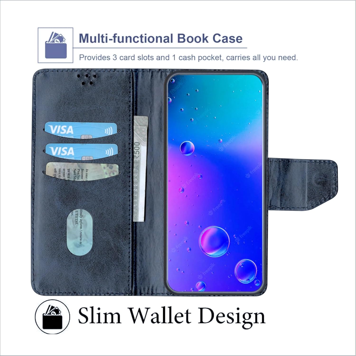Material : Artificial Leather. POCKETS INSIDE :: There are Pockets built inside which allows you to keep Cards / Cash / Docs in this Wallet Case.