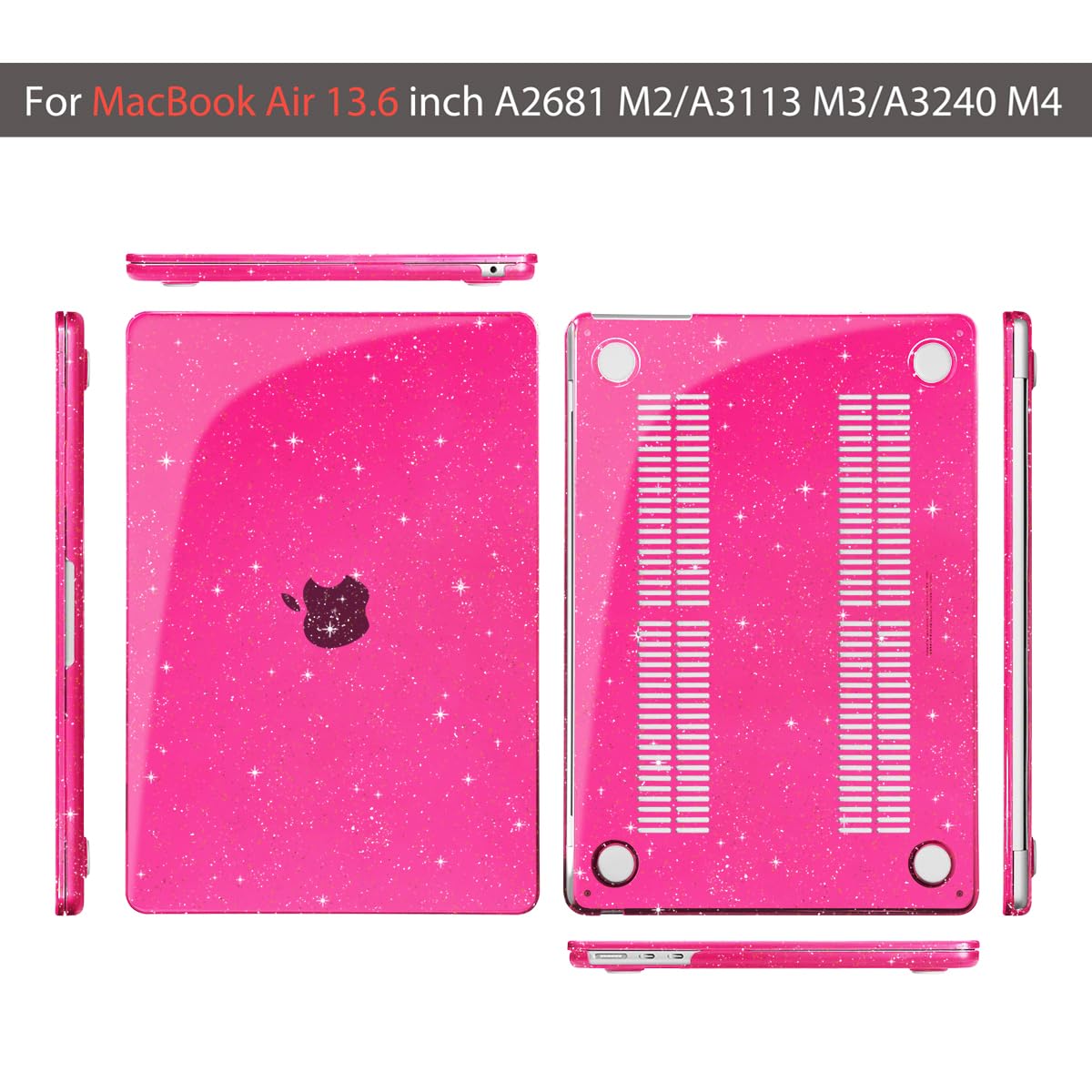 Teryeefi Glitter Case for MacBook Air 13 Inch M4 M3 M2 Chip Release 2022-2024 2025 fits Model A2681/A3113/A3240, Hard Shell Case with Keyboard Cover for MacBook Air 13.6 inch, Sparkly Rose Pink