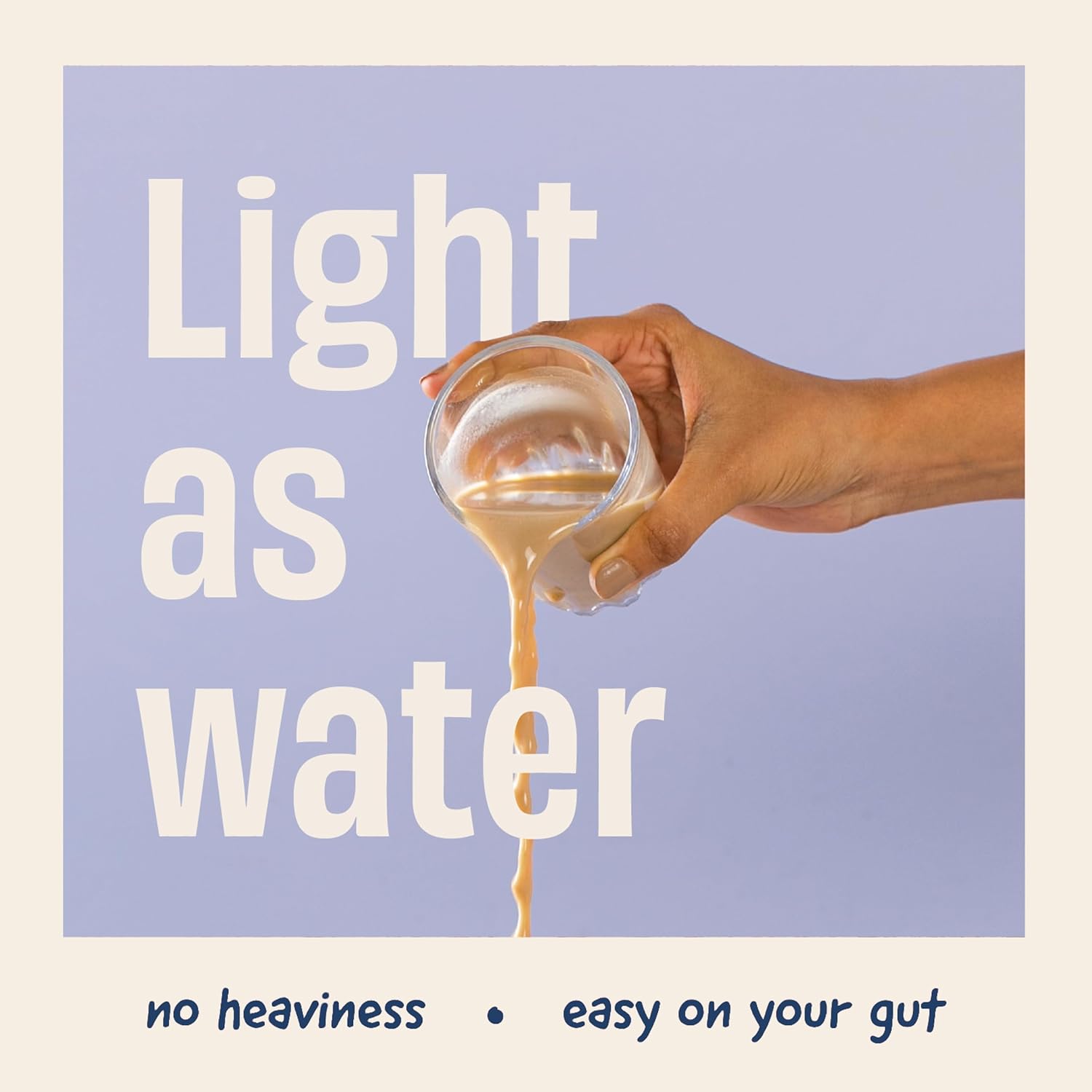 Mildly flavoured with real ingredients: Not overly sweet (no added flavour). No metallic aftertaste (no artificial sweetener). Not thick & heavy (no xanthan gum). Just real food (no harmful chemicals). So…you get a slightly sweet, mildly flavoured protein that goes down as easily as water. Your tongue will like it. Your gut will love it <3