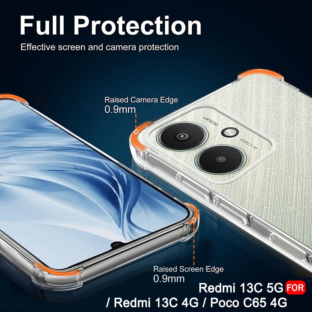 TheGiftKart Back Cover For Mi Redmi 13C 4G / 13C 5G / Poco C65 / Poco M6 5G | Shockproof Clear Soft TPU Case | Cushioned Edges for Ultimate Protection for Redmi 13C 4G/13C Back Case (TPU, Transparent)