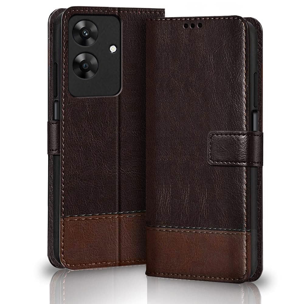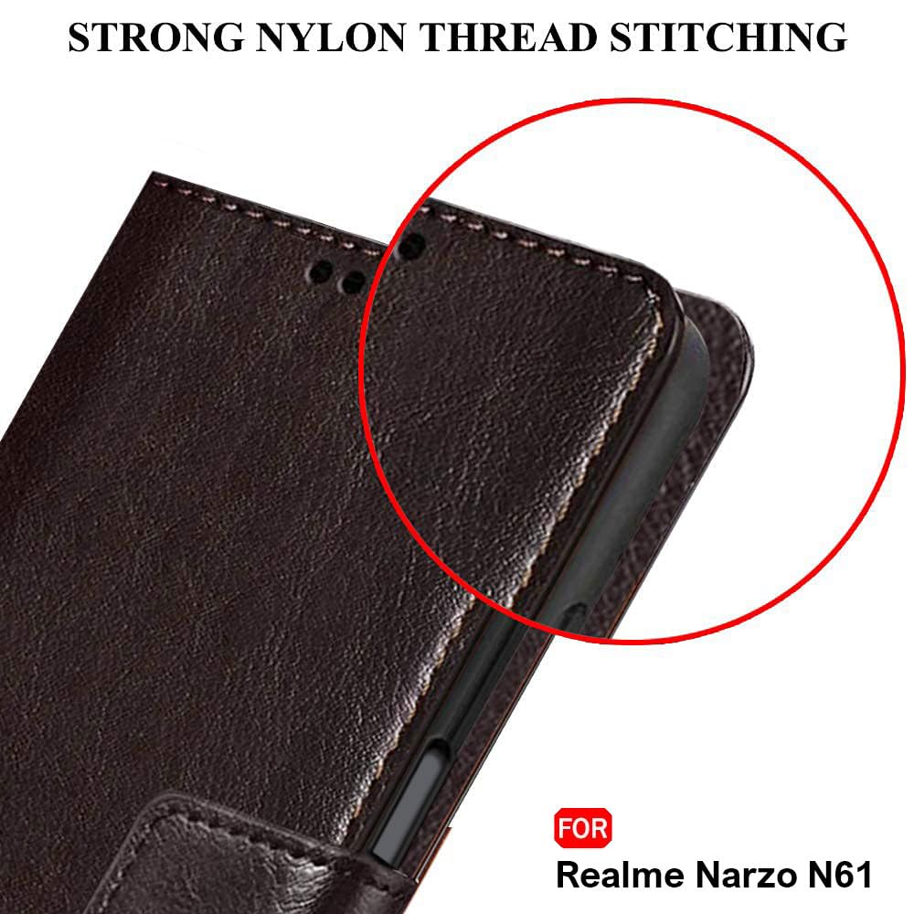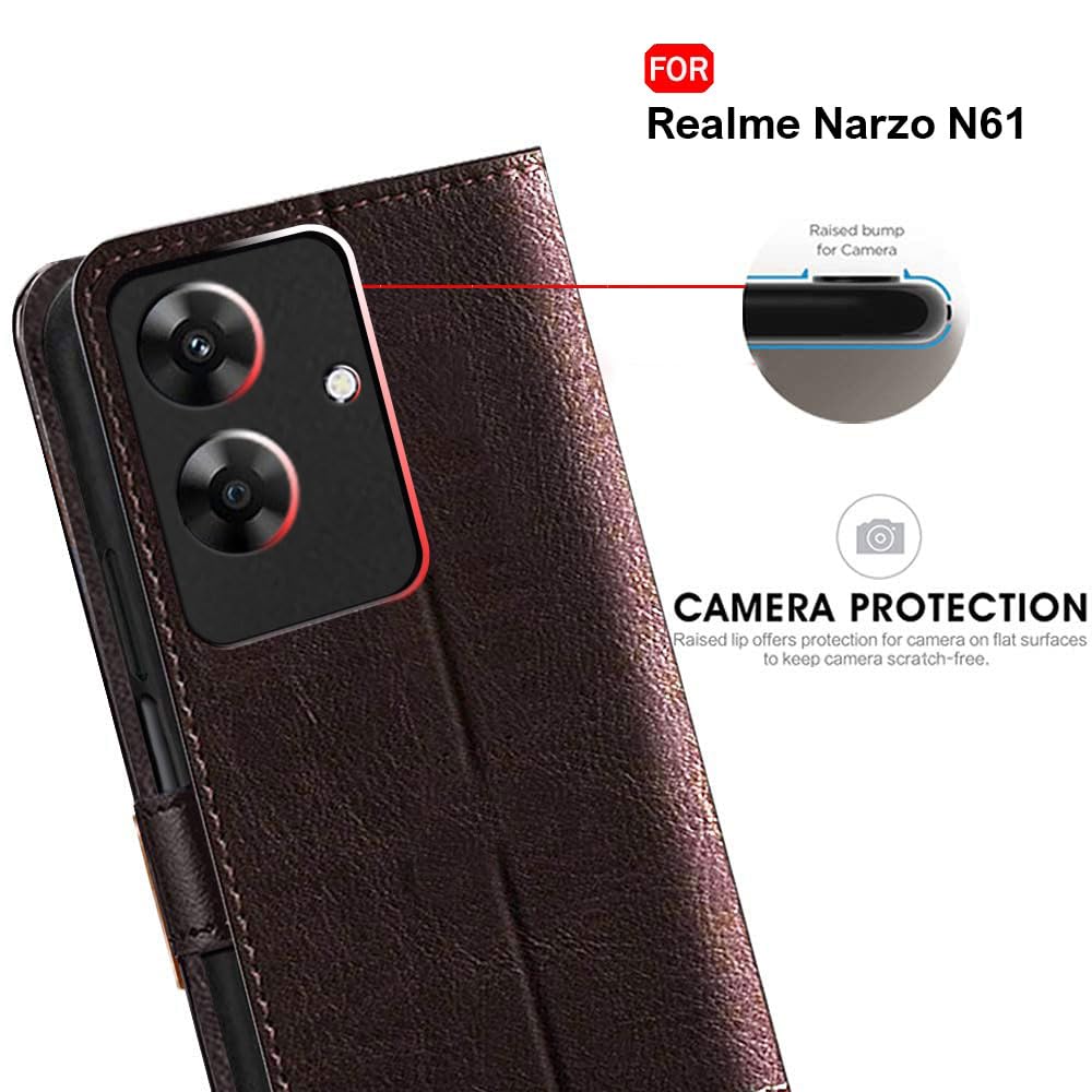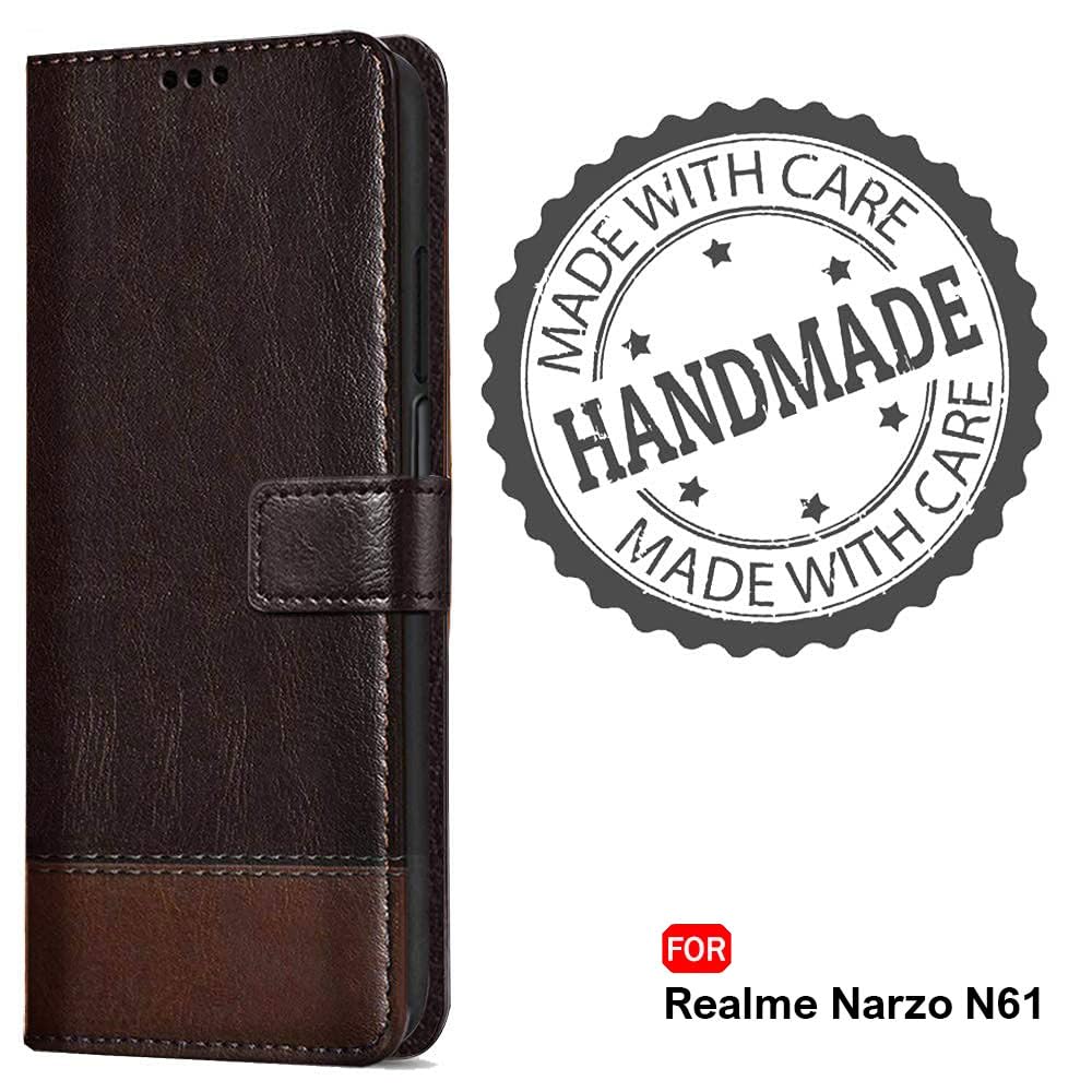 TheGiftKart Flip Back Cover Case for Realme Narzo N61 | Dual-Color Leather Finish | Inbuilt Stand & Pockets | Wallet Flip Back Case Cover for Realme Narzo N61 (Faux Leather, Coffee & Brown)