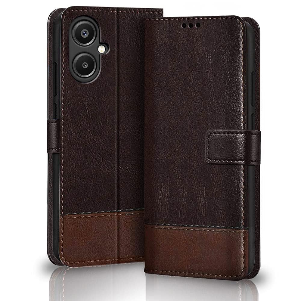 TheGiftKart Flip Back Cover Case for Samsung Galaxy M05 / A05 / F05 | Dual-Color Leather Finish | Inbuilt Stand & Pockets | Flip Back Cover for Samsung M05 / A05 / F05 (Faux Leather, Coffee & Brown)
