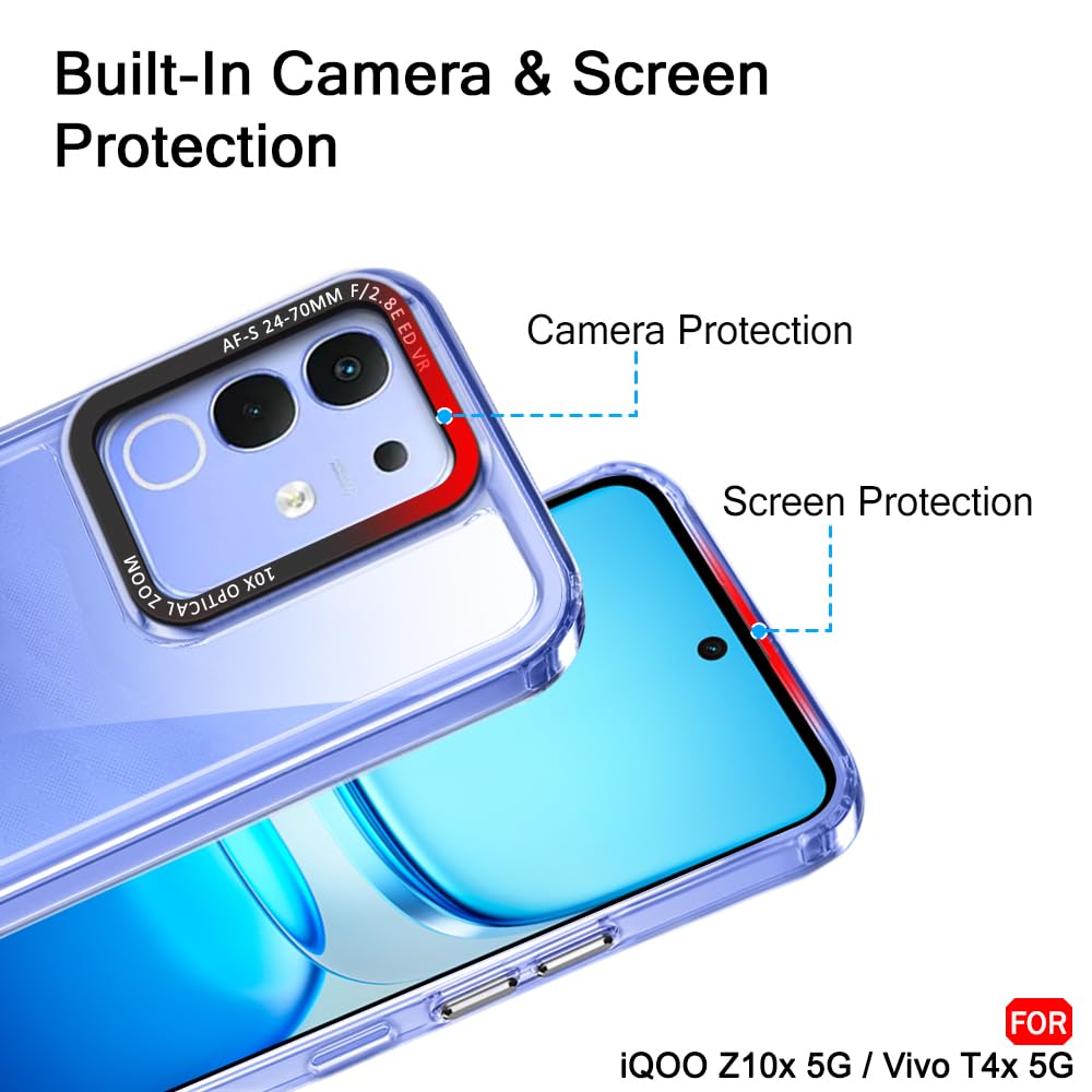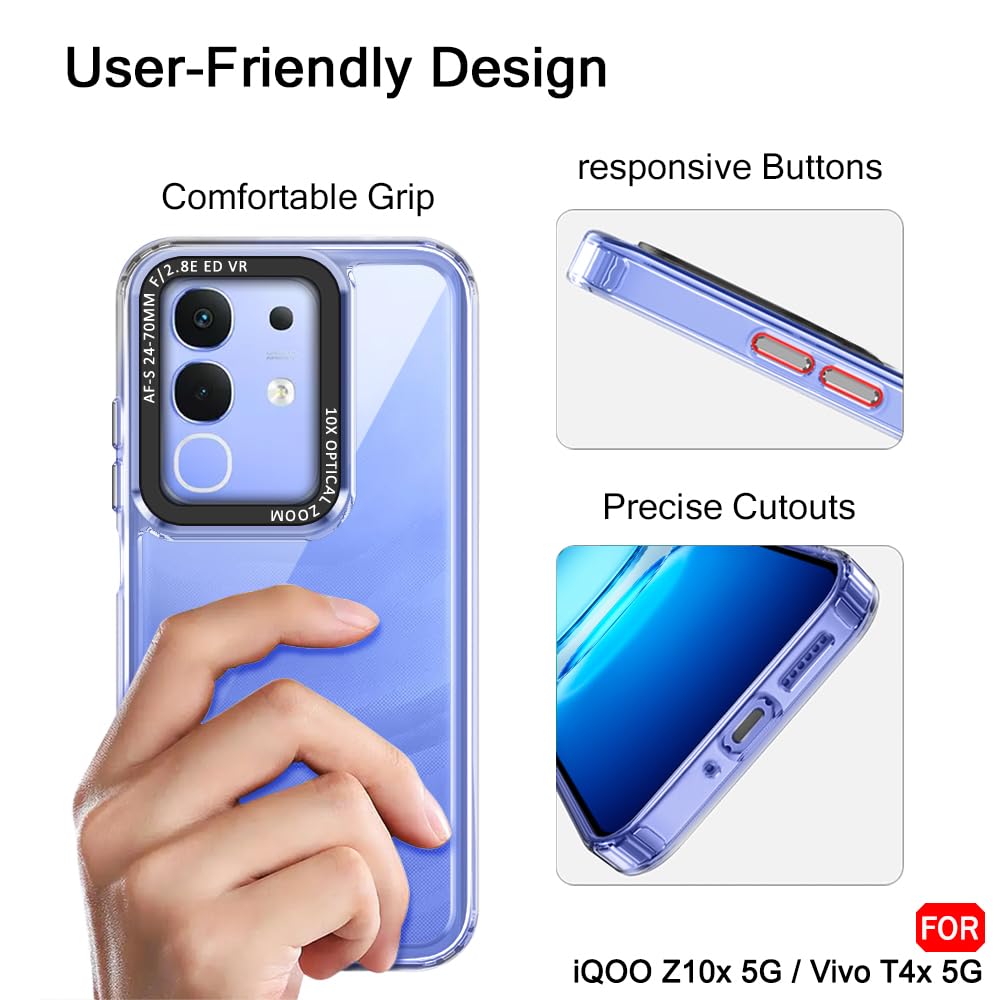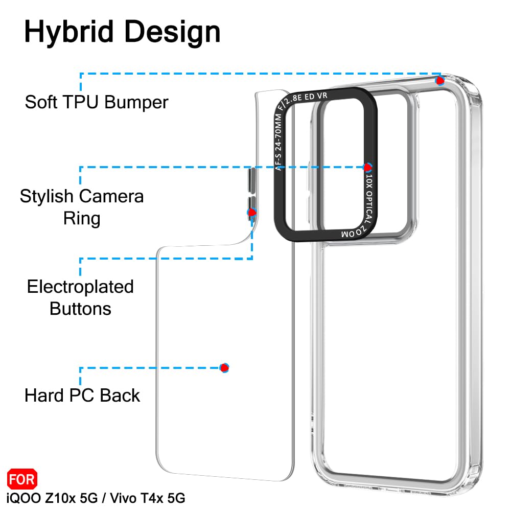 TheGiftKart Hybrid ShockProof Back Cover Case for iQOO Z10x 5G / Vivo T4x 5G | Stylish Camera Border | Plated Buttons | Crystal Clear Hard Cover for iQOO Z10x / Vivo T4x (TPU & PC, Transparent Bumper)