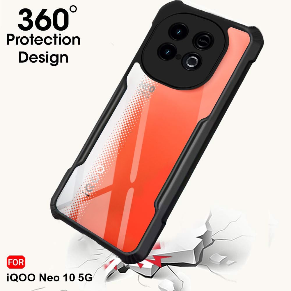TheGiftKart Shockproof Crystal Clear Back Cover Case for iQOO Neo 10 5G | 360 Degree Protection | Protective Design | Transparent Back Cover Case for iQOO Neo 10 5G (PC & TPU, Black Bumper)