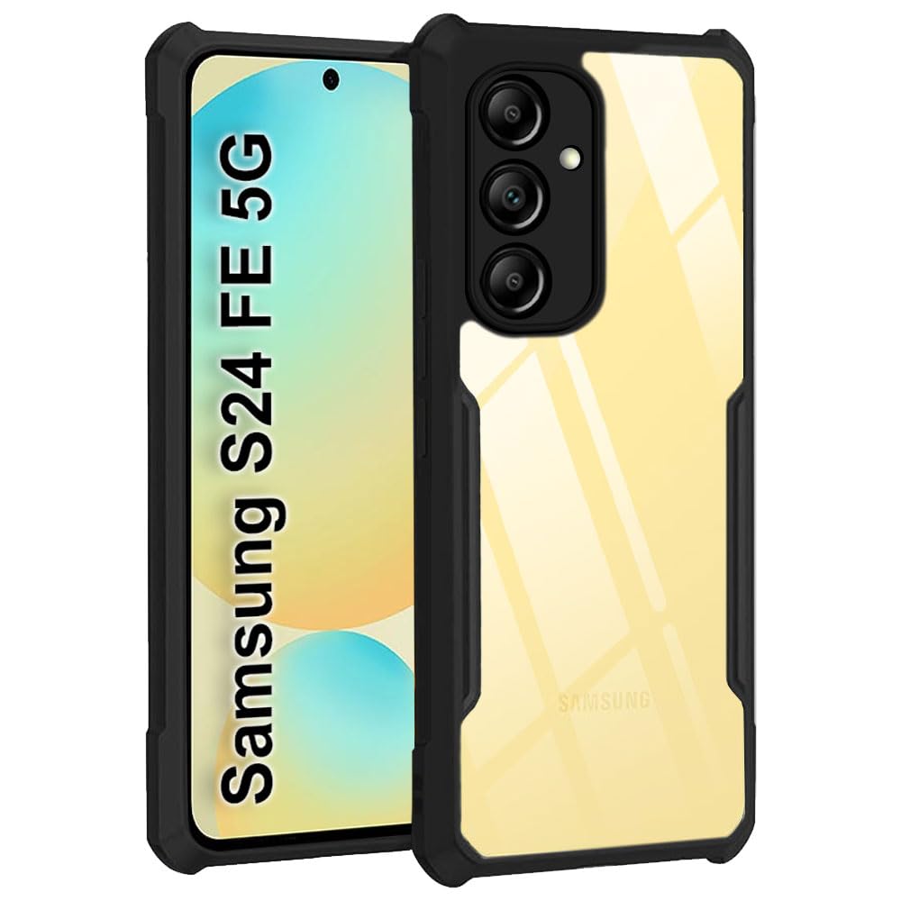 TheGiftKart Shockproof Crystal Clear Back Cover Case for Samsung Galaxy S24 FE 5G | 360 Degree Protection | Protective Design | Transparent Back Cover for Samsung S24 FE 5G (PC & TPU, Black Bumper)