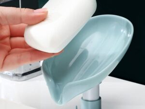 Pathavi Self-Draining Soap Dish – Modern Leaf Design with Drainage Holes, Leak-Proof & Durable Plastic for Bathroom or Kitchen Sink, Easy to Clean (Blue, Set of 1)