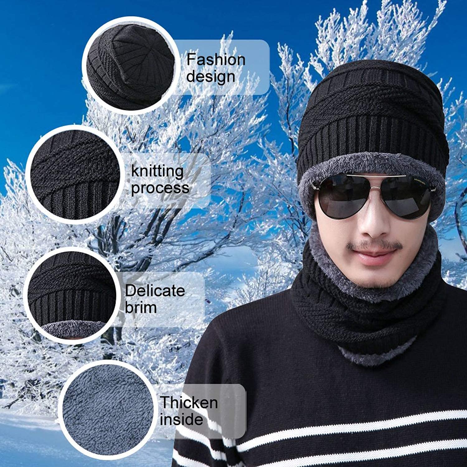 TORIOX Winter Beanie Men Women Hat Scarf Set Warm Knit Hat Thick Fleece Lined Winter Cap Neck Warmer for Men Women Girl Winter Sports and Daily Use Multicolour