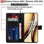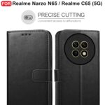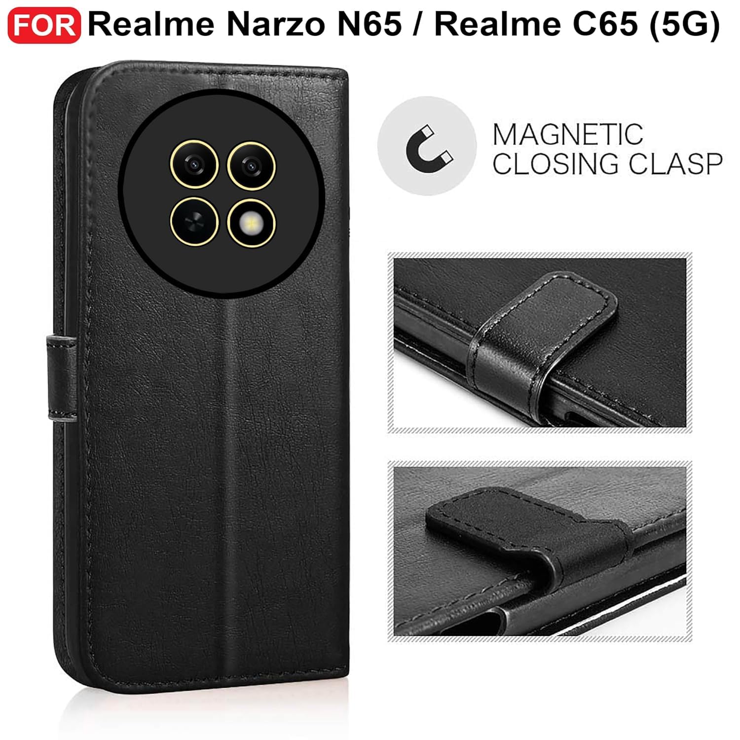 PRACTICAL STYLISH DESIGN – With 3 cardholder slots and a cash pocket, you can easily carry your ID, credit cards, driver’s license, and cash. The stand function is perfect for video chatting and watching films, adding convenience to your daily use.PRECISE CUSTOUTS – This case offers easy access to all ports, controls, and buttons without needing to remove it. It’s designed for easy installation and removal, ensuring a hassle-free experience.PREMIUM MATERIAL – Crafted from premium leather and a durable TPU inner bumper, the case provides a comfortable touch and a pleasing look. The reinforced stitching enhances durability and adds an extra layer of protection.360 DEGREE PROTECTION – The case covers all sides and corners of your phone, safeguarding it from dust, scratches, bumps, and daily wear and tear. The strong hidden magnetic closure keeps the case securely closed, offering perfect screen protection.MADE FOR – Designed and Handcrafted Flip Mobile cover for – Narzo n65 5G