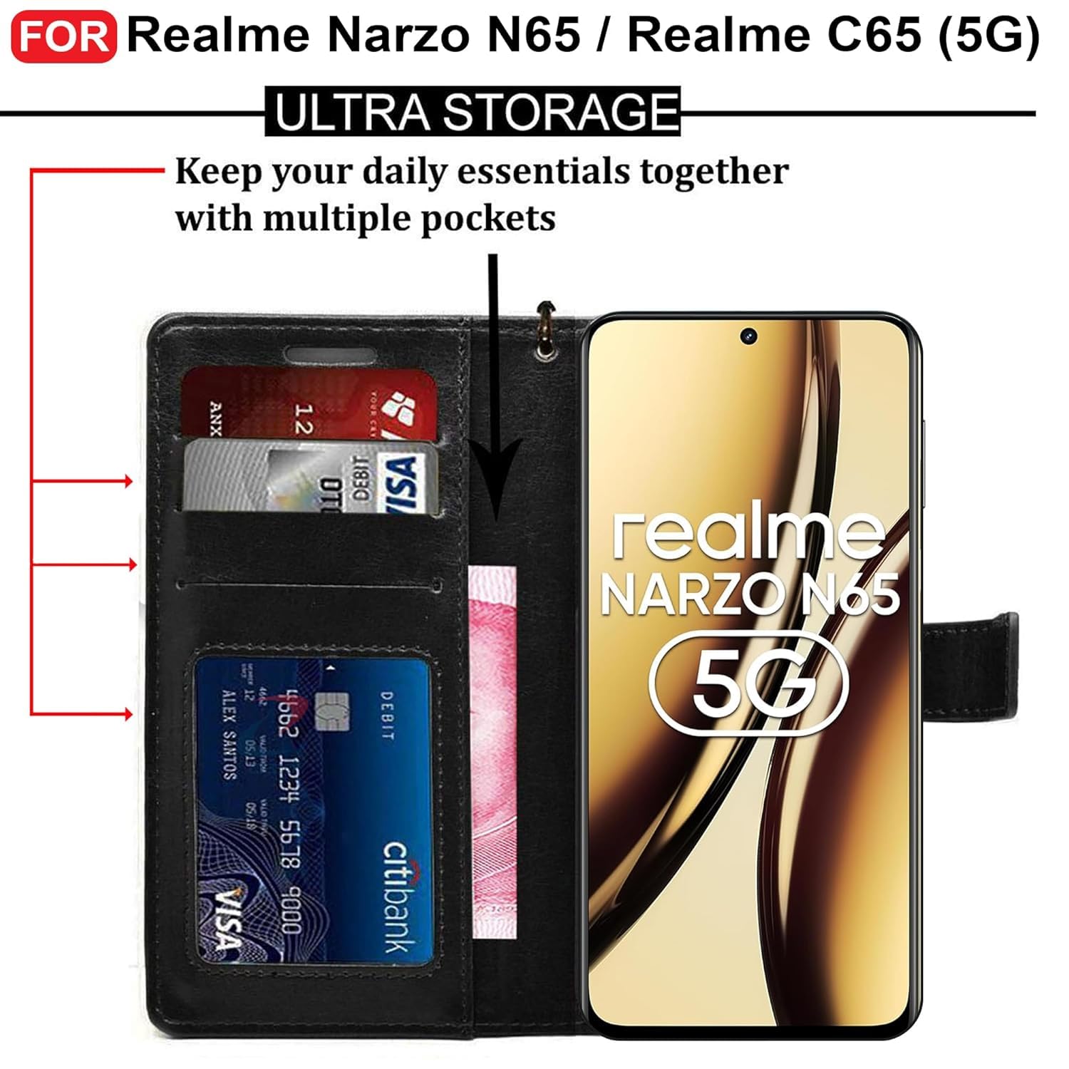 TOUCCH Flip case for Narzo n65 5G| Leather Finish Cover & Flexible Stand Design | Card and Money Pocket | Black