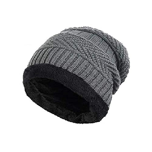 TruFlair Winter Knit Beanie Cap Hat Neck Warmer Scarf and Woolen Gloves Set Skull Cap for Men Women/Winter Cap for Men (Grey Color-3 Piece)(Tru-Cap-04
