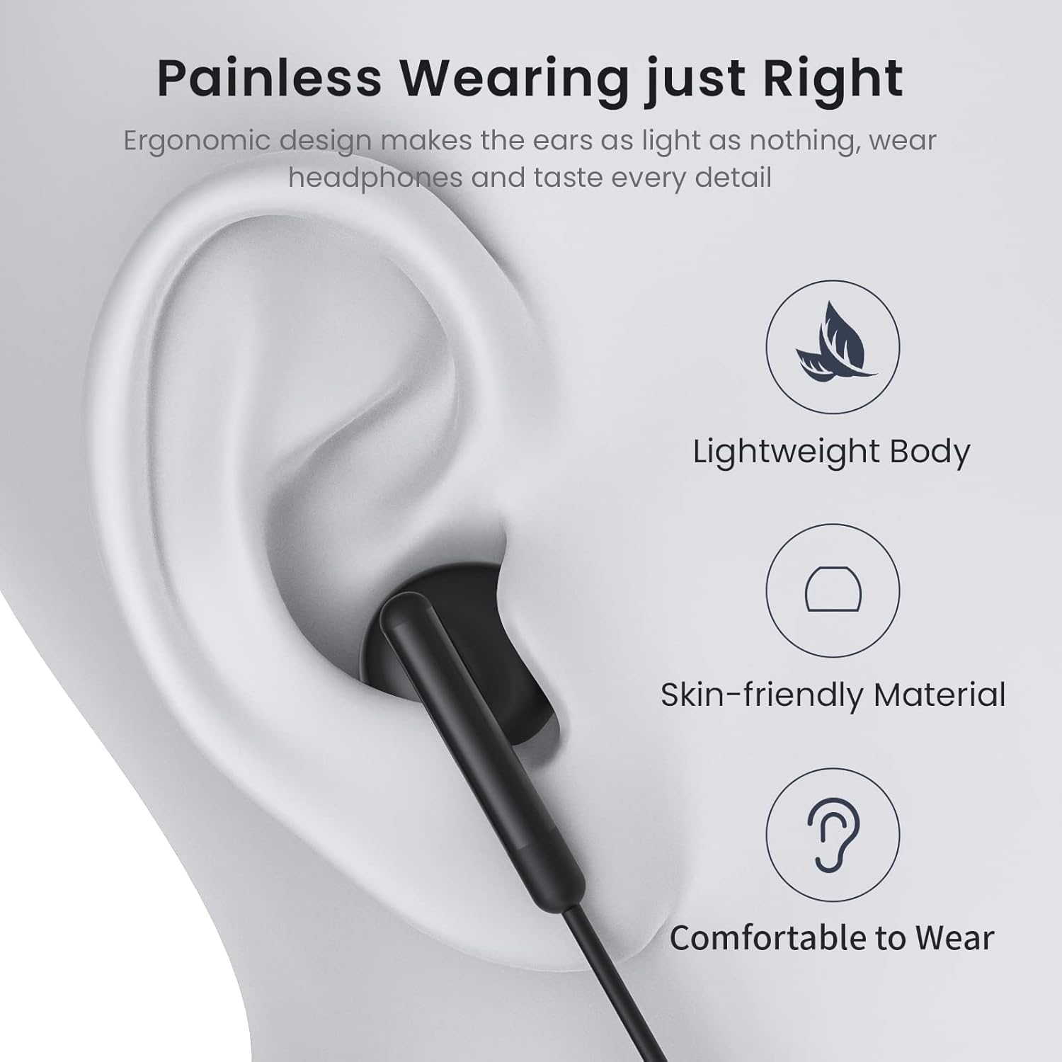 COMFORTABLE IN-EAR: Designed as half-in-ear ergonomic shape and lightweight body, don t block all outside noise, For iPhone 15 Earphones Included Anti Drop Earplugs, ensure the headphones snugly fit. Anti-wrap oxygen-free copper wire inside provides the whole earphones flexibility to get through backpack clothes while moving outside activities. Come with Storage Case, keep the usb c earphones safe and extremely portable,so Type C Headphones provide you secure and comfortable wearing experience