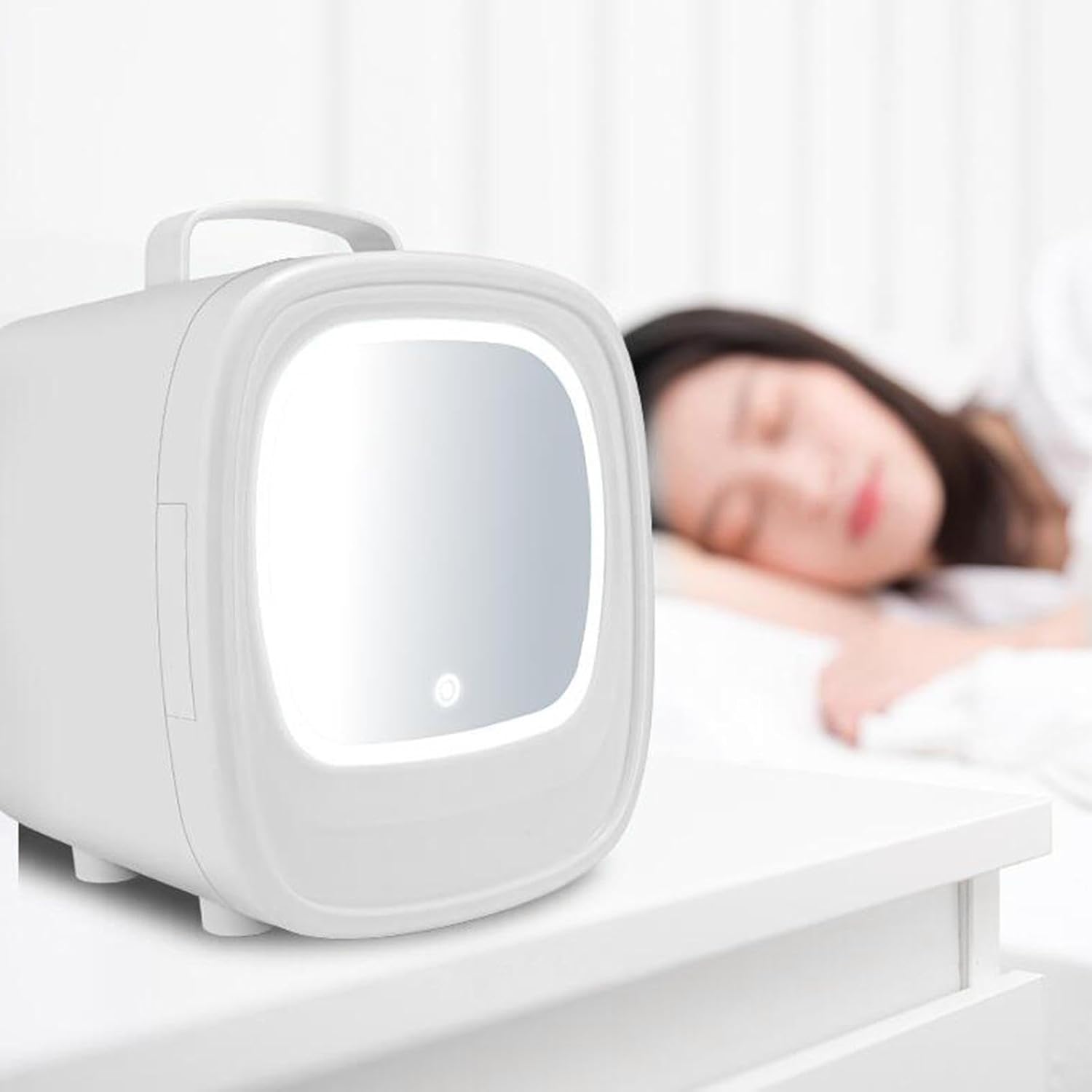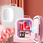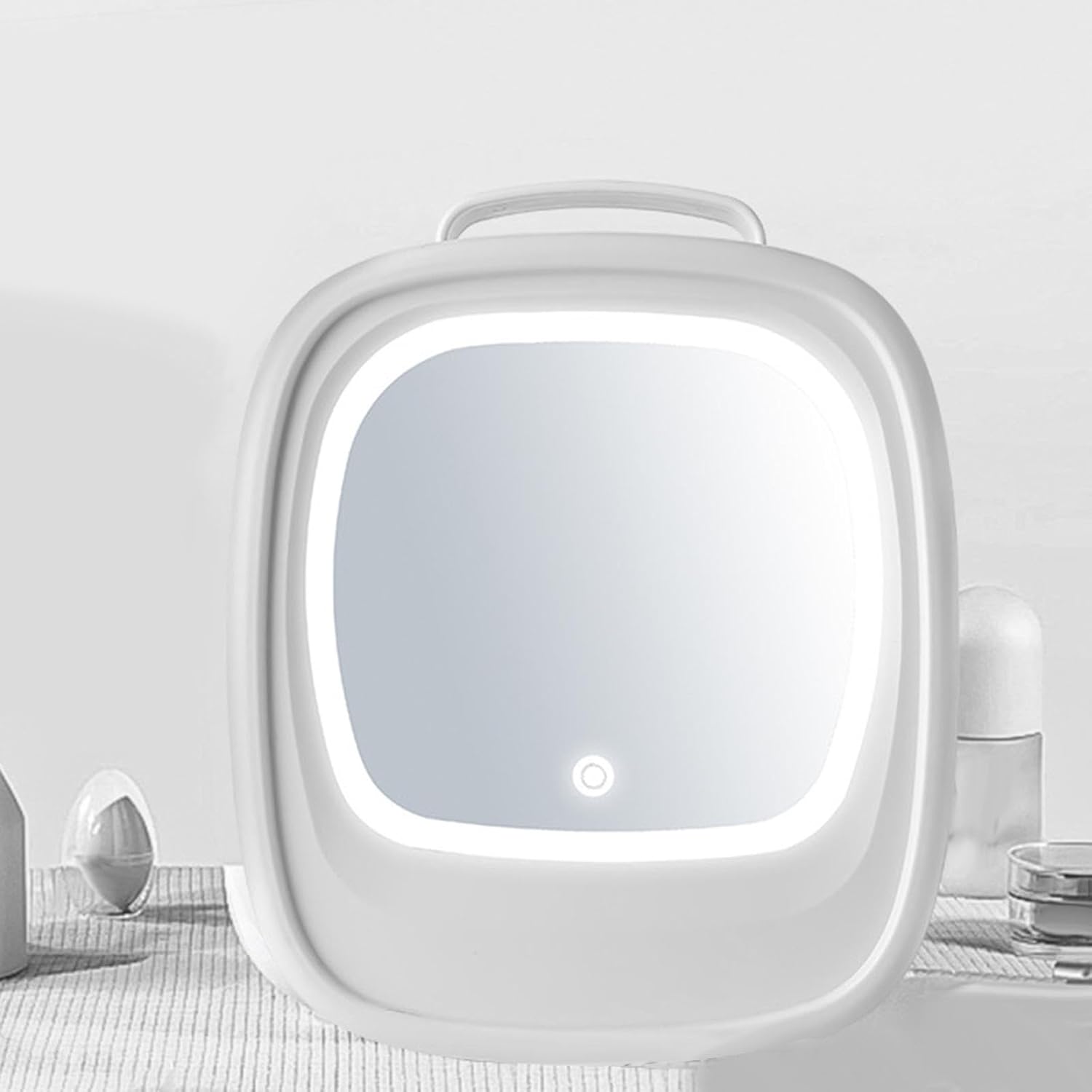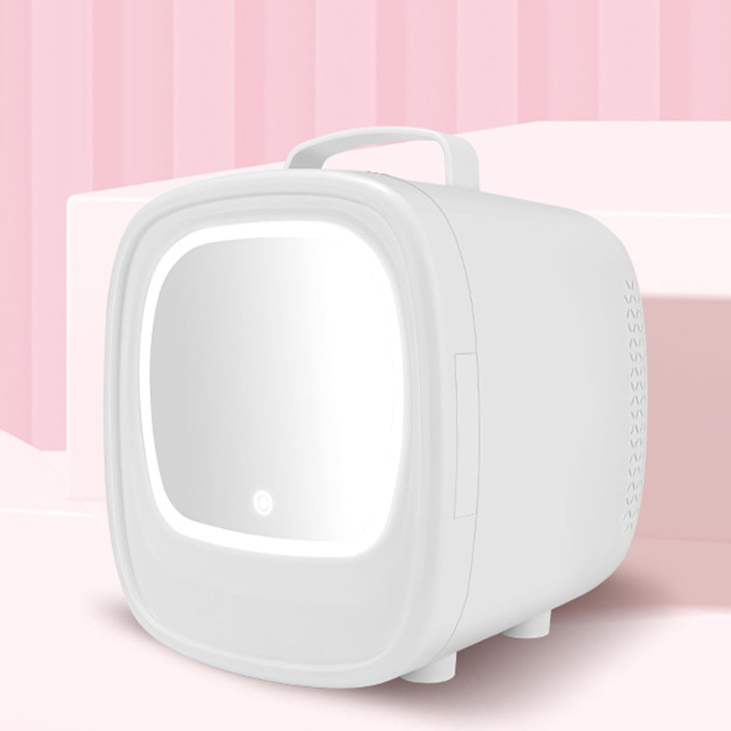 UJEAVETTE Skincare Fridge 6L with Led Makeup Mirror Mini Fridge for Food Skincare White Car Home Use