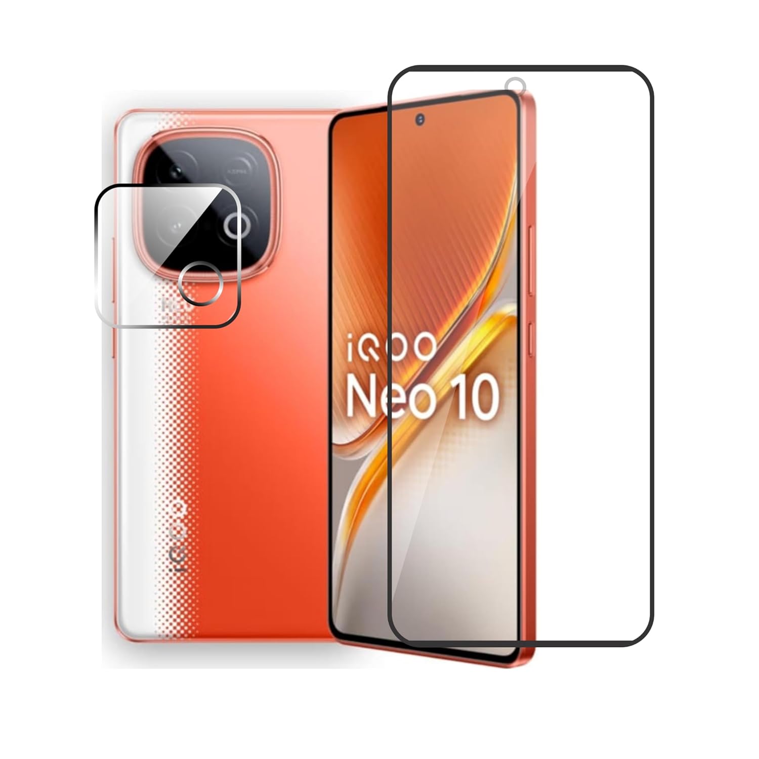 Upgrade Tempered glass with Back camera lens protector Compatible With Iqoo Neo 10 (combo pack)