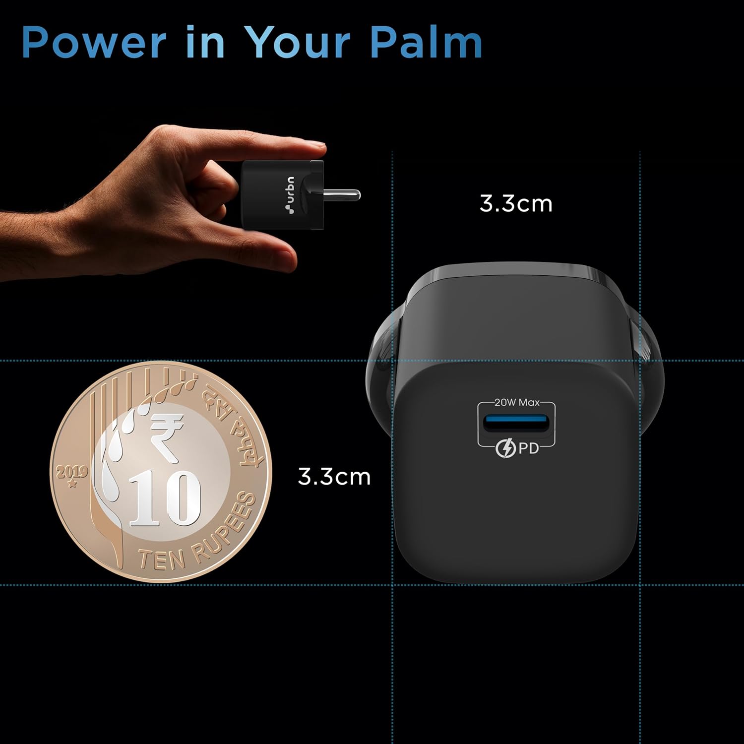 Urbn 20W USB-C iPhone Charger | Ultra-Fast Type C Power Delivery Pd Adapter with Gan Technology | for iPhone 15/14/13, Galaxy, Pixel, Ipad & More – Black