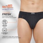 This brief with its Anti Bacterial N9 Pure Silver Technology finish on the fabric helps you stay fresh for longer by reducing >99% odour causing bacteria as per lab tests. The fabric also has wicking property which draws perspiration from the skin; keeping the body cool, dry and comfortable. It also comes with Colour Fresh Technology on the fabric which keeps the brief looking new for longer as proved by lab tests. Stay comfortable with Label Free Comfort.