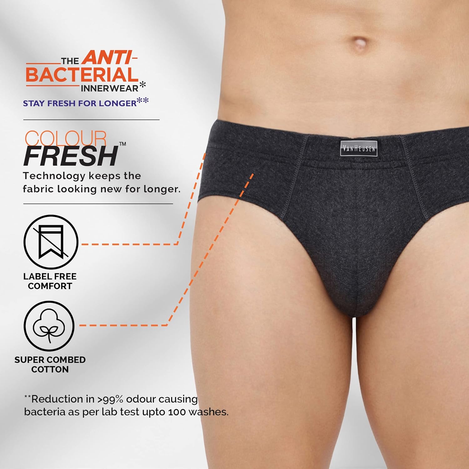 Van Heusen Men 100% Cotton Brief – Pack of 3 – Anti Bacterial, Colour Fresh, Moisture Wicking