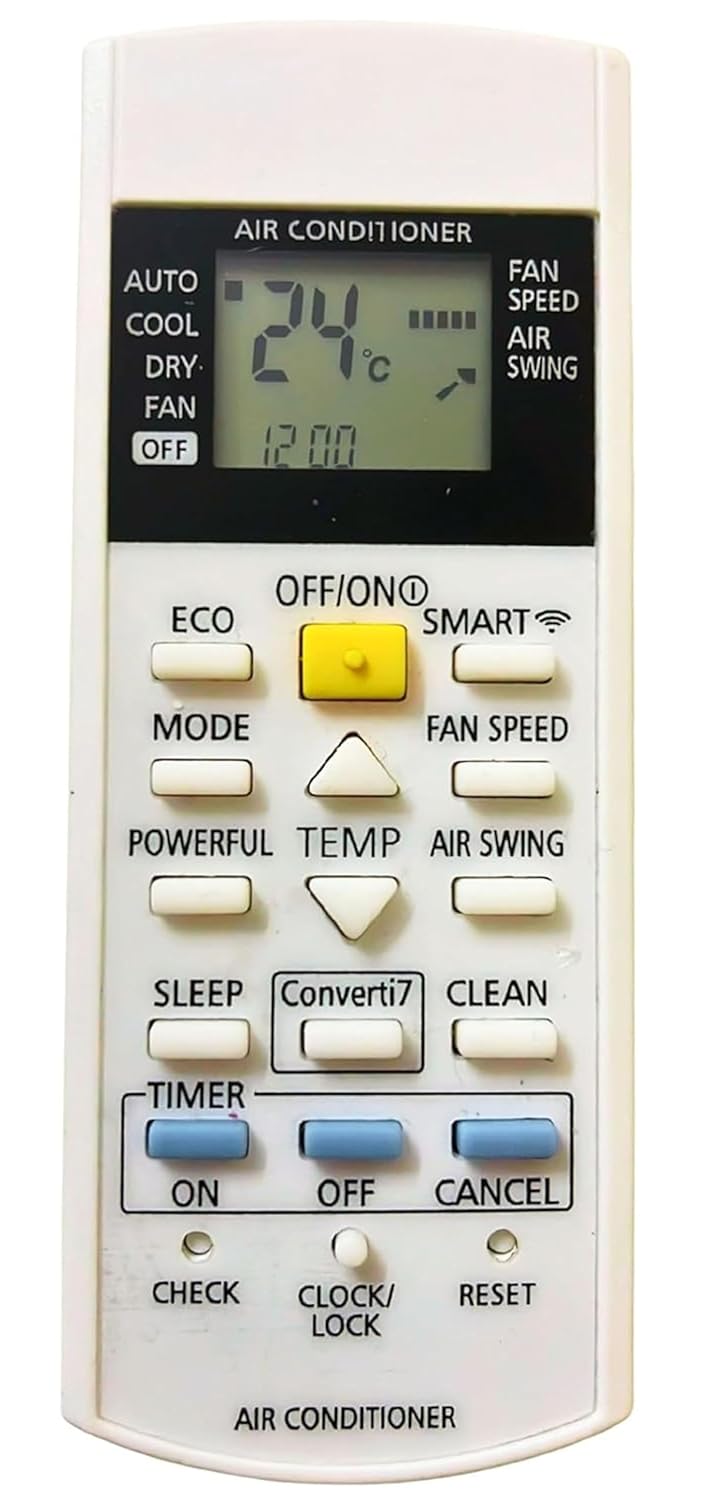 Universal AC Remote Compatible for Panasonic Inverter AC Remote Converti7 Smart WiFi Eco Function(CS-NU18ZKY5W CU-NU18ZKY5W) 29j 4676 (Work Only If Your Old Remote Same)