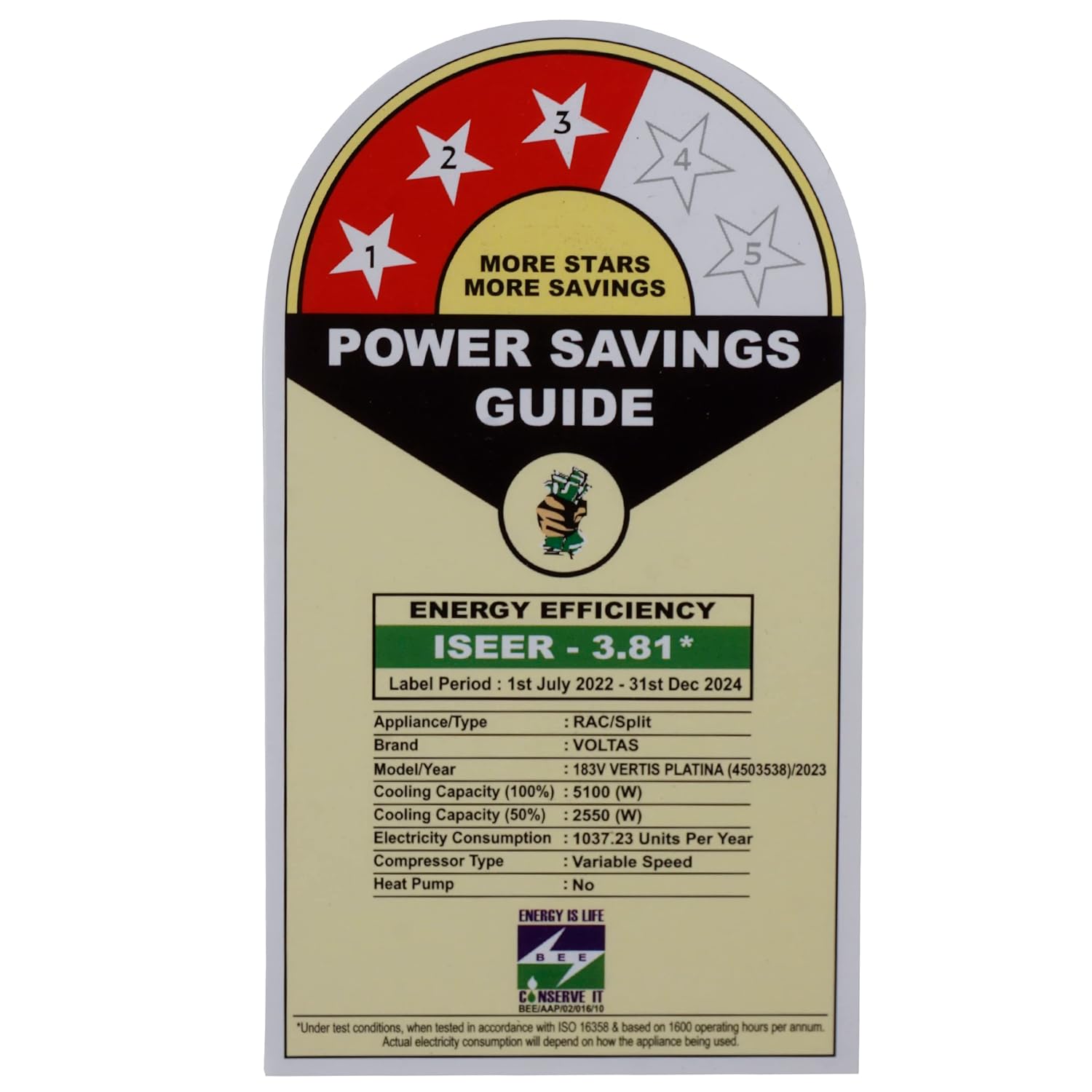 Energy Rating: 3 Star | Annual Energy Consumption 4800 Units per year | ISSER Value: 3.81