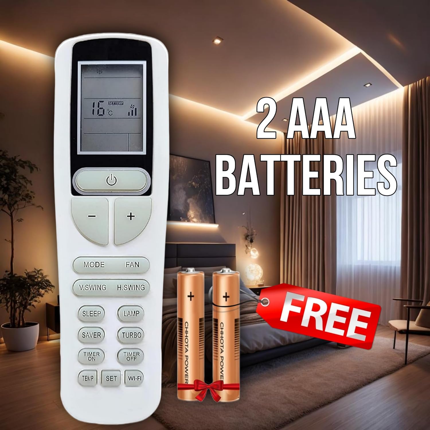 Voltas AC Remote Compatible Includes 2 AAA Batteries for Split/Window Air Conditioners | Replacement for Voltas AC Remote with WiFi Key (AC-133B)