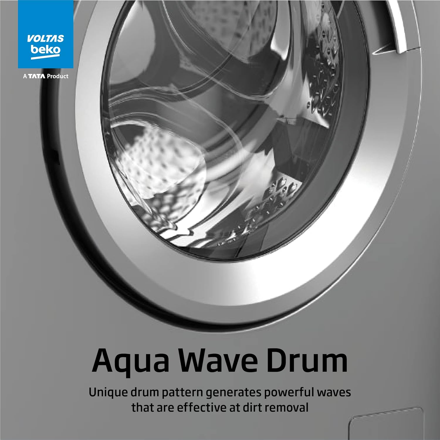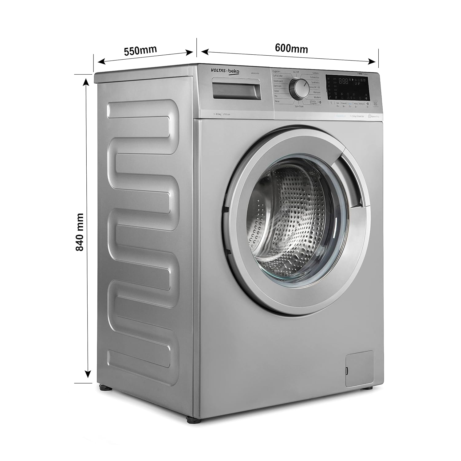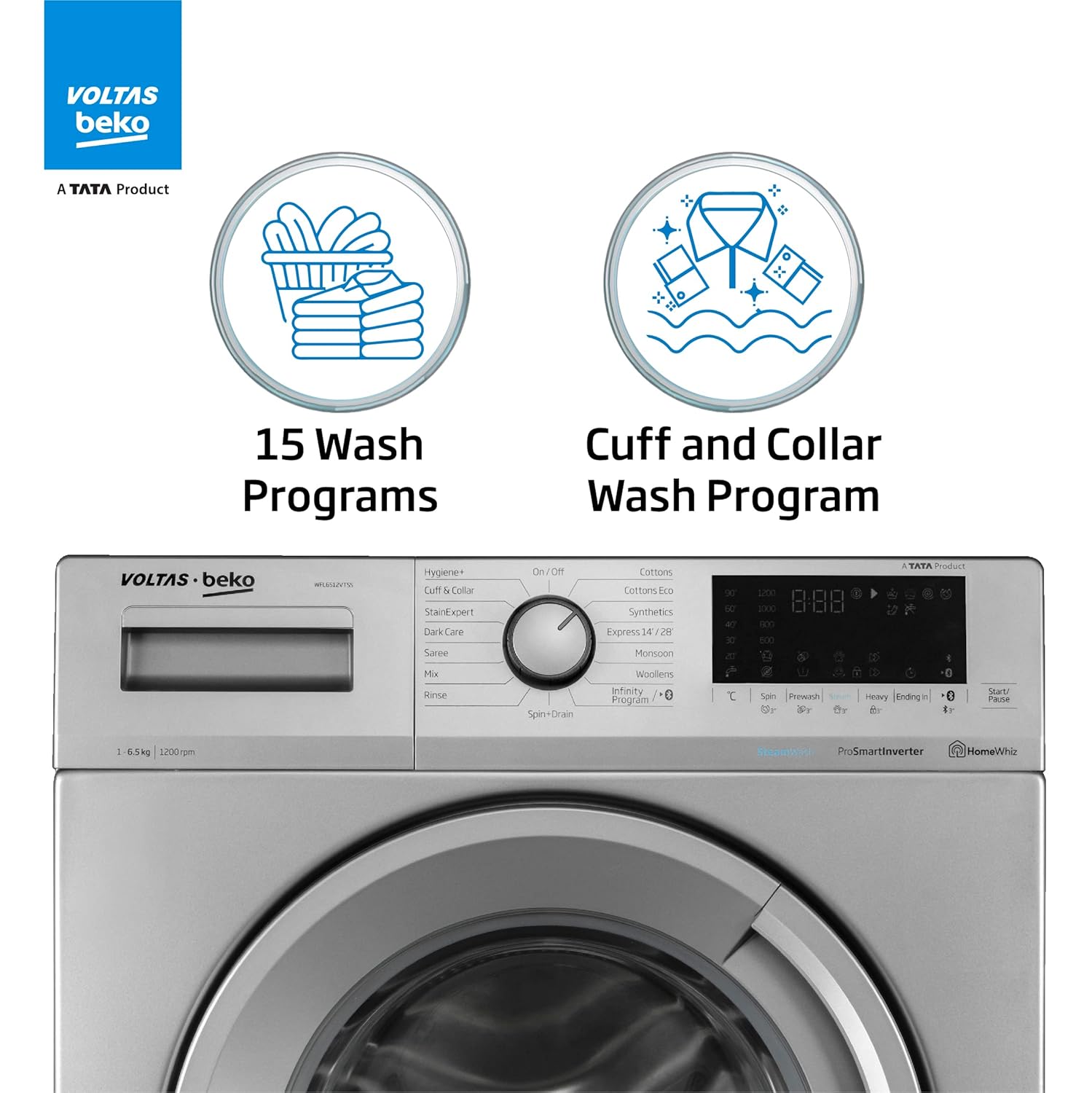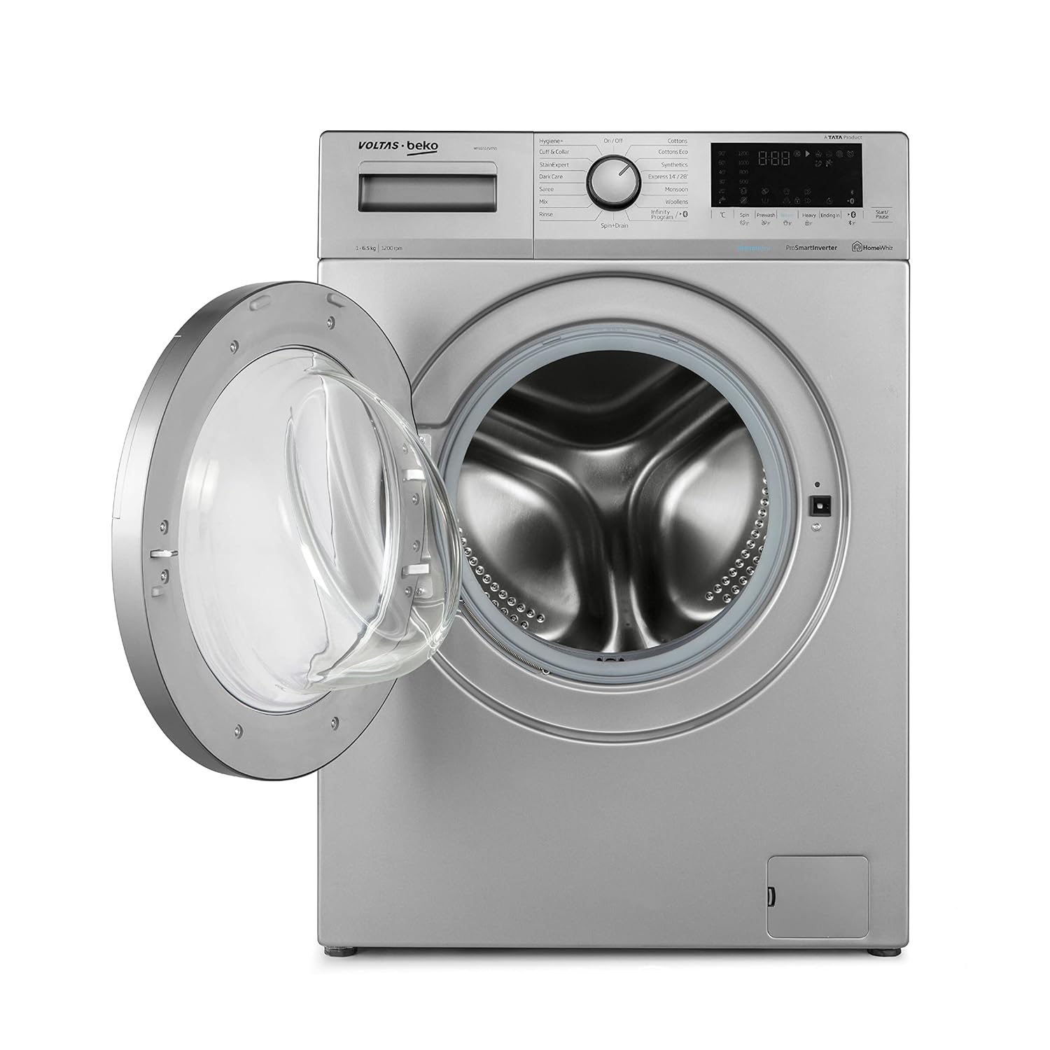 Voltas Beko 6.5kg, Inverter, 5 Star Front Load Washing Machine (WFL6512VTSS, Silver), Steam Wash,Stain Expert